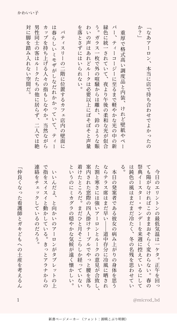 microd_bd☆quiet followDONEアロルク『かわいい子』恋人になって三日のアロルクがアラナさんと食事する話。バディエピ16。モブへの聞き耳立てて、ルクが『可愛い』に嫉妬する話。ワンライお題「嫉妬」お借りしました。 ##アロルク show all(+32 images) Tap to full screen (size:618x1132).Repost is prohibited Let's send reactions! freqpopularsnackothersPayment processing Replies from the creator Follow creator you care about!☆quiet follow microd_bdDONEアロルク『ジミー・バーディの持論』モブ視点。🏀の試合で活躍するルクと、愉快なチームメイトが話し掛けたワイルドな人の話。恋人アロルク。バディエピ16時空。お題「後方彼氏」お借りしました。 25 microd_bdDONEアロルク『かわいい子』恋人になって三日のアロルクがアラナさんと食事する話。バディエピ16。モブへの聞き耳立てて、ルクが『可愛い』に嫉妬する話。ワンライお題「嫉妬」お借りしました。 33 microd_bdDONE初期アロルク⑦完夢遊病初期ルクと、それに夜な夜な付き合わされる初期アロの懐かしい悪夢の話。両片想い。※ニンドリネタ・幼lkhr。シリアスでハッピーエンド。初期BONDふぁみつー設定。アロ視点ラスト。 29 microd_bdDONE初期アロルク⑥続き長編夢遊病初期ルクと、それに夜な夜な付き合わされる初期アロの懐かしい悪夢の話。両片想い。※ニンドリネタ・幼lkhr。シリアスでハッピーエンド。初期BONDふぁみつー設定。嘔吐表現があります。アロ視点。 19 microd_bdDONE初期アロルク⑤続き長編夢遊病初期ルクと、それに夜な夜な付き合わされる初期アロの懐かしい悪夢の話。両片想い。※ニンドリネタ・幼lkhr。シリアスでハッピーエンド。初期BONDふぁみつー設定。次回からアロ視点。 14 microd_bdDONE初期アロルク④続き長編夢遊病初期ルクと、それに夜な夜な付き合わされる初期アロの懐かしい悪夢の話。両片想い。※ニンドリネタ・幼lkhr。シリアスでハッピーエンド。初期BONDふぁみつー設定。 19 recommended works 💜月々❤️PAST『再会と雨』前編。タイトル思いつかなかった💦二次創作始めたばかりの時の絵ですごい恥ずかしい…。発掘してきました。 4 博物少女志DOODLE 6 mi_ro_okMOURNING ほや🐟DONE👍怪盗キッド 雪時雨DONEWe are O-MENZ!! 8 可惜夜DONEレオいずWEBオンリーライドオンセレナーデ !… CHECKMATE …🥀ライセナ3、カウントダウン企画🌹 6243 anpeogryDOODLE弄脏制服了。。。 TT_Rex_SoloDOODLEるおさん誕生日おめでとう第二弾!道旬! 629 サーモン丼DOODLE昏のすけべなお顔