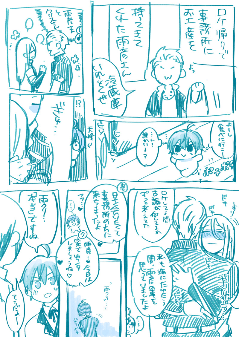 えび太郎@ebizarashi☆quiet followDOODLEパバステ6を記念して。天峰くん何度描いても似ない…。ふと見た雨クリの姿に衝撃を受けて欲しい…。 Tap to full screen (size:968x1366).Repost is prohibited Let's send reactions! freqpopularsnackothersPayment processing Replies from the creator Follow creator you care about!☆quiet follow えび太郎@ebizarashiDOODLE思いのほかラフからいい線画に出来たなというコマ。描いといてなんだけど近いな…彦さん…。 えび太郎@ebizarashiDOODLE彦さんの筋肉、盛れるだけ盛っていいよね!?ってなりながら描いた落書き。鍛えてたらいいなぁという願望と、それを間近で観察してたころさんという…。そんで貰い事故北村くん。 えび太郎@ebizarashiDOODLE追憶、海に融けての初見感想文(手書き)です。要領を得ない感じになってますが、許してください。パスは繋がってる人の名前2文字(カタカナ)です。普通にカプ厨妄想も入ってます。雨クリです。 3 えび太郎@ebizarashiPROGRESSそいえば11月用の原稿、大まかなネームが描けたので進捗報告。ここのコマはもしかしたら無くなるかも?いや入れるかな?と思いながら描いたコマ。 えび太郎@ebizarashiDOODLE寝落ちして投稿出来なかったやつ…。流しそうめんと雨クリ。付き合ってるという事をまだ誰にも言ってない時の2人と、普通にわかる叔母様の図。 えび太郎@ebizarashiDOODLE【擬獣化】雨クリとポメ村くん。2人の事は認めてるけど、僕の前でクリスさんに手を出さないでよねって思っちゃうポメ村くんなのでした。(ころさんがポメ村くんの飼い主設定)