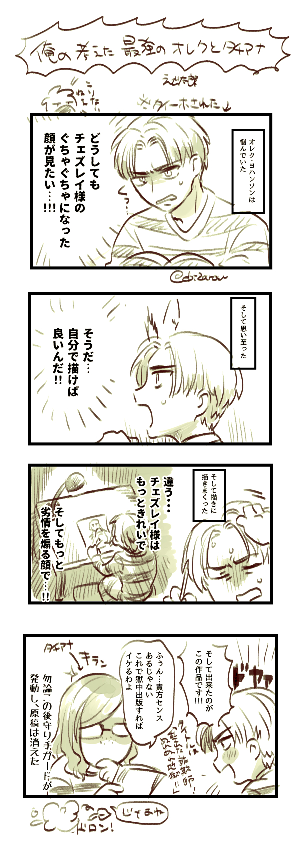 えび太郎@ebizarashi☆quiet followDOODLE俺の考えた最強のオレクとタチアナの四コマ漫画です。ご査収下さい。主に三コマ目が描きたかっただけです。 Tap to full screen (size:607x1699).Repost is prohibited Let's send reactions! freqpopularsnackothersPayment processing Replies from the creator Follow creator you care about!☆quiet follow えび太郎@ebizarashiDOODLE思いのほかラフからいい線画に出来たなというコマ。描いといてなんだけど近いな…彦さん…。 えび太郎@ebizarashiDOODLE彦さんの筋肉、盛れるだけ盛っていいよね!?ってなりながら描いた落書き。鍛えてたらいいなぁという願望と、それを間近で観察してたころさんという…。そんで貰い事故北村くん。 えび太郎@ebizarashiDOODLE追憶、海に融けての初見感想文(手書き)です。要領を得ない感じになってますが、許してください。パスは繋がってる人の名前2文字(カタカナ)です。普通にカプ厨妄想も入ってます。雨クリです。 3 えび太郎@ebizarashiPROGRESSそいえば11月用の原稿、大まかなネームが描けたので進捗報告。ここのコマはもしかしたら無くなるかも?いや入れるかな?と思いながら描いたコマ。 えび太郎@ebizarashiDOODLE寝落ちして投稿出来なかったやつ…。流しそうめんと雨クリ。付き合ってるという事をまだ誰にも言ってない時の2人と、普通にわかる叔母様の図。 えび太郎@ebizarashiDOODLE【擬獣化】雨クリとポメ村くん。2人の事は認めてるけど、僕の前でクリスさんに手を出さないでよねって思っちゃうポメ村くんなのでした。(ころさんがポメ村くんの飼い主設定) recommended works もちごめDOODLEデ🐶先生の髪の毛の白黒比気になりすぎるから後ろ向いてほしいという気持ちで描いていた落書き。小説はこっち↓https://www.pixiv.net/novel/show.php?id=13668402 日比谷オレンジDONEマレ監スケアリードレス もちごめDONEおさそい 4 きゃーすがDONEセベクはボディガードにもなりそうだけど、さりげなく守ることもしそうだなと思って。⚠️魔法を捏造しています 5 KaviTataTRAININGFree drawings for those who dared to write to me on twitter. I can still write about the drawings с: 1 part#twstプラスB #twstプラス #Malleus_Draconia #OC #Divus_Crewel 3 FUMI(ふみお)DOODLE #モクチェズ版ワンドロワンライ「のろけ」アーロンすまん… まめこあけびDONEラギ監ちゃんワンドロ!!と、言いつつ、4ドロくらいかけてしまった第20回《○○の秋》+【楽しかった】ラギ監ちゃん楽しく過ごせ… 2 もちごめDONEしゅき(語彙力消失)twst夢 twstプラス not監督生 2 林forestTRAINING風日老师的古风pa长发陆让我从早上第一眼上头到现在🥺🗝️18↑?→(yes/no)
