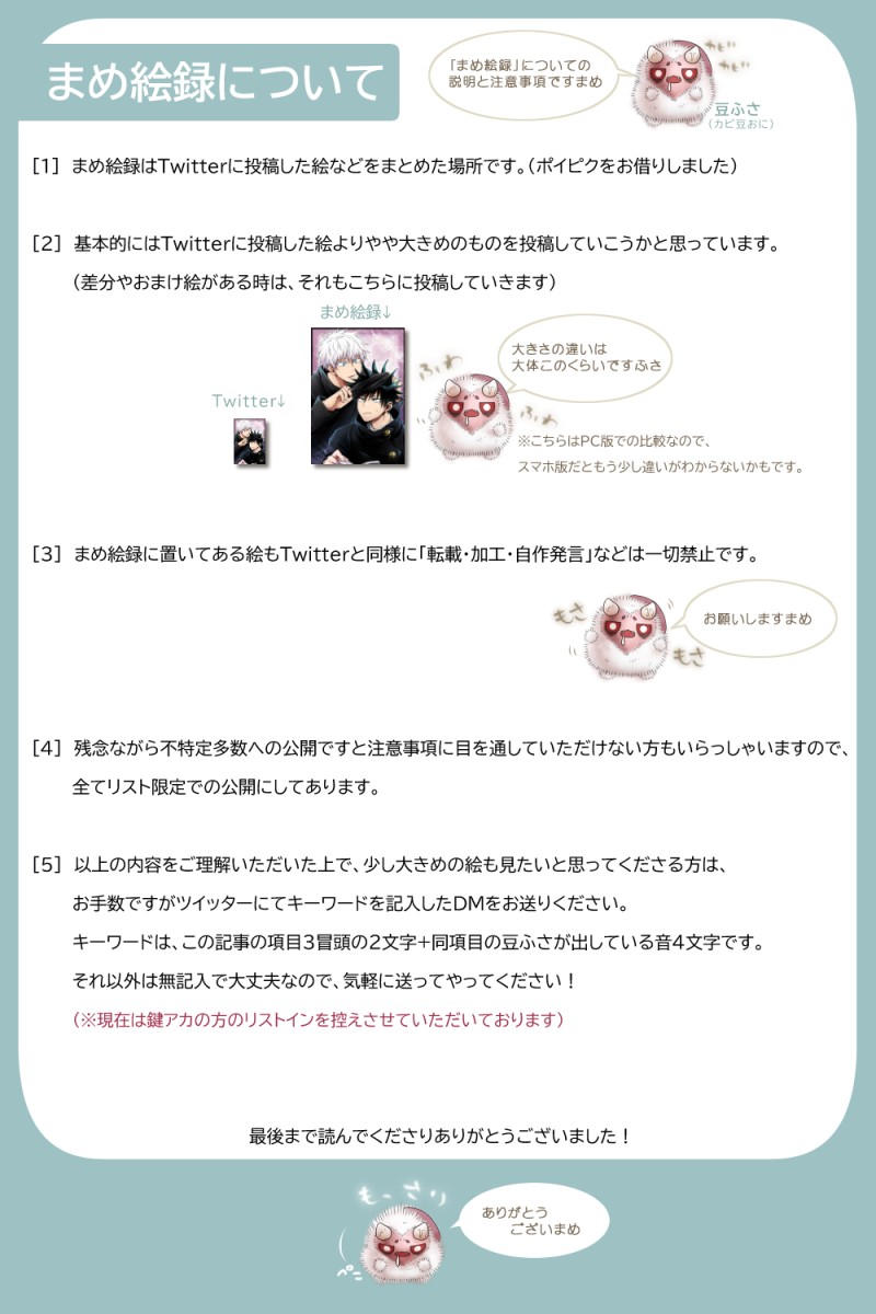 転載等防止の為、全てリスト限定にしてありますので、もしイラストにご興味をお持ちいただけましたら下記のリンク先の内容をご参照の上、申請を宜しくお願い致します。