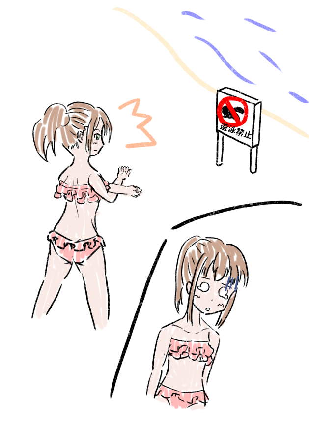 遊泳禁止でがっかりする水着の娘