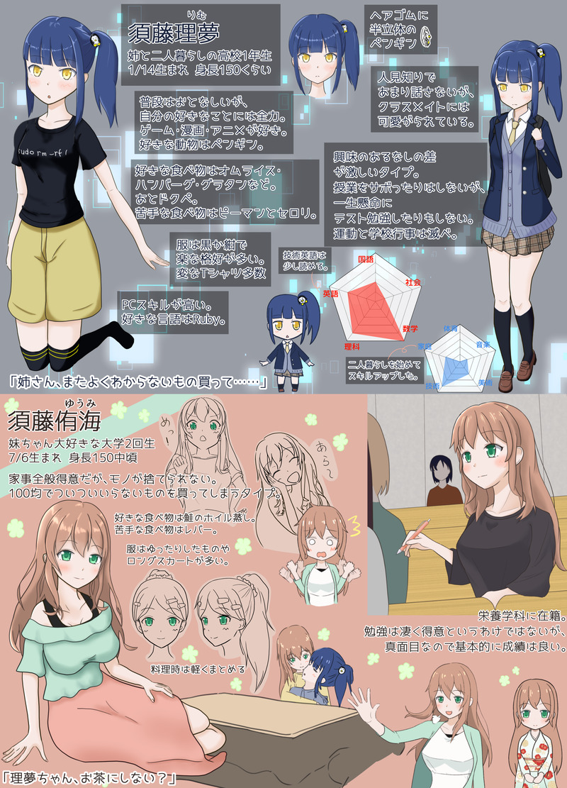 うちの娘姉妹のイラスト。