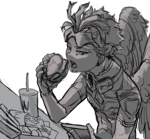 この一月半ほど「チキンタツタを食うホークス」を延々と描き直してる。