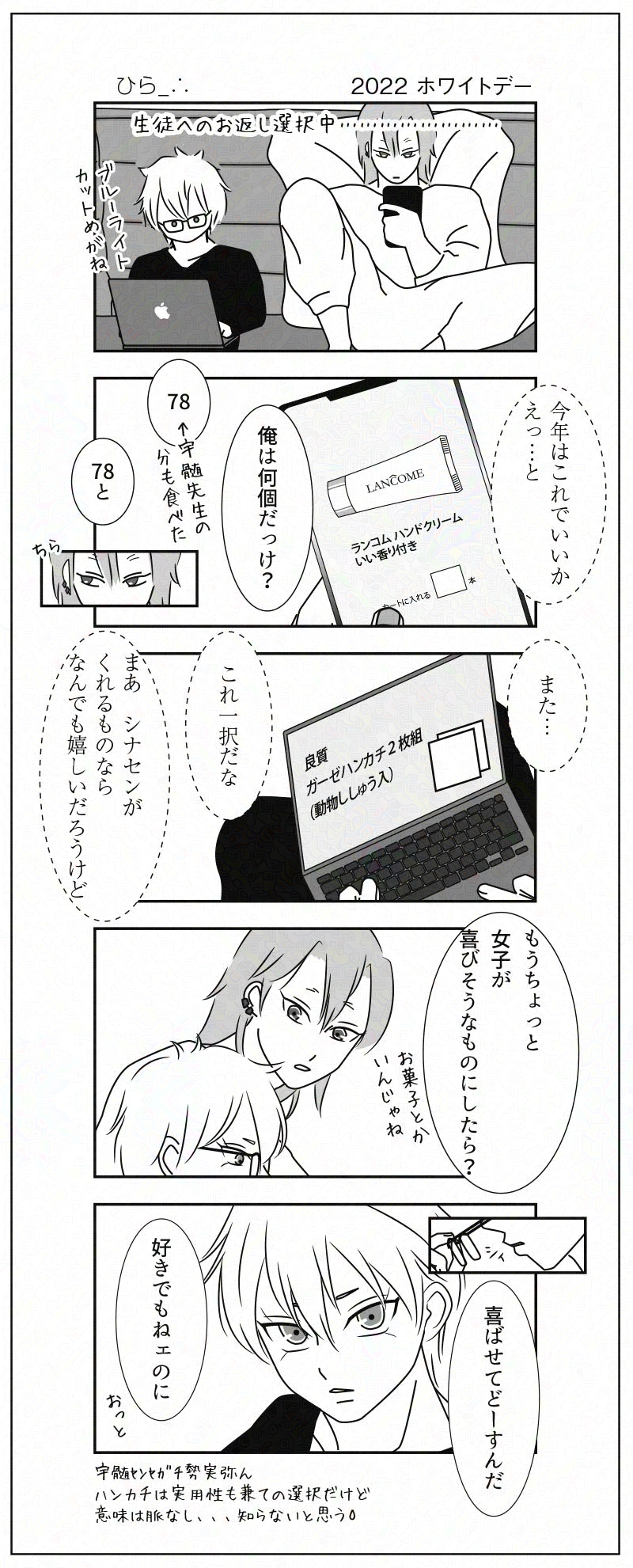 ひら_∴☆こそフォロできた実宇ハッピーバレンタインハッピーホワイトデーまとめ常にイチャイチャしてる2人にとっては学校の行事感が強いオフィスとプラベの2人が描けて嬉しい🤗チビ🍃クン、いつもの髪型なのは設定ミスです😂😂😂大きくなるにつれてクセが取れた、という体でよろしくです😅😅😅 すべて表示(+9枚) タップで全画面(原寸:800x1981)無断転載禁止 リアクションをたくさん送って応援しよう! よく使う人気おやつその他支払処理中 作者からのリプライ 気になる人をどんどんフォローしよう!☆こそフォロ ひら_∴できた実宇ハッピーバレンタインハッピーホワイトデーまとめ常にイチャイチャしてる2人にとっては学校の行事感が強いオフィスとプラベの2人が描けて嬉しい🤗チビ🍃クン、いつもの髪型なのは設定ミスです😂😂😂大きくなるにつれてクセが取れた、という体でよろしくです😅😅😅 10 ひら_∴自主練1.5hどろー💦最近よく見るあれをふと思い出しちゃった🍃センセー単調作業中、この場合は教科書の問題を写す、急に別の事考えちゃったりしません⁉︎😅 私はある🤣 ひら_∴自主練吸われて揉まれてボイーーーーンを確認する1人💎🥧祭\(//∇//)\ ひら_∴自主練義宇 ラフ 余生話の続きメモ書きみたいな💧🌊くん片腕で正常位できそうにないので対面座位とか💎の顔見てしたいのよ〜わかる← ひら_∴できた昨年もたくさん見ていただきありがとうございました♡2026年もよろしくお願いします❣️余生うさぎ初詣設定てんこ盛りなんですけどインスタでダラダラ書いてますので省略🙏防寒襟巻きで隠れちゃった💎さん金色生地に鶴柄、赤帯、羽織り留めはシャララ石使用✨🌊くん大柄梅模様(💎がくれた😂ド派手にめでたい着物も見てくださいw 2 ひら_∴自主練義宇 欲する現役バリバリ柱同士は毎回溜まってて…いいですねハアハア🌊隊服×💎着流しはヘキですw今年もご覧いただきありがとうございました♡たくさんスタンプ❤️もらえて嬉しかったです❤️❤️❤️またください😊😊😊← おすすめ作品 ひゅんできた第2回 実宇ドロライ【花冷え】お題お借りしました。現パロ「とある春の夜」 7 ひゅんできた第12回 実宇ドロライお題【腕時計/眩しい】・キ学軸/恋人同士・☔だって2人でいたら楽しいね 3 ひら_∴できた実宇 幼馴染設定いろいろ2 5 ひゅんできた第19回 実宇ドロライお題【雪/ちぐはぐ】DKの2人/年齢操作/両片思いぬるいアオハルのお話です。 6 ひゅんできた第20回 実宇ドロライお題【タクシー/憂鬱】↓↓↓の続き。https://poipiku.com/2178959/7109834.htmlキ学軸/タクシーのお題が微妙・両片思い微妙なとこ・💎さんの余裕が今後なくなっていく予定↓↓↓↓↓こちらの続きになります❥ 6 ひゅんできた第13回 実宇ドロライお題【口付け/鳴り響く】同棲中/🍃サンの家族が少し出てきます🍃サンメインの話ですがガッツリ実宇 5 ひゅんらくがきさねうドロライ風音夏祭2023第29回【体調不良/気のせい】「その答えが知りたくて」※まだ🍃💎未満な2人 4 あああらくがき 🌴真夏☀️らくがきキャバドレスのチョと他の6️⃣年少しだけ※1枚目女装・2枚目女体化・いろいろ注意 2