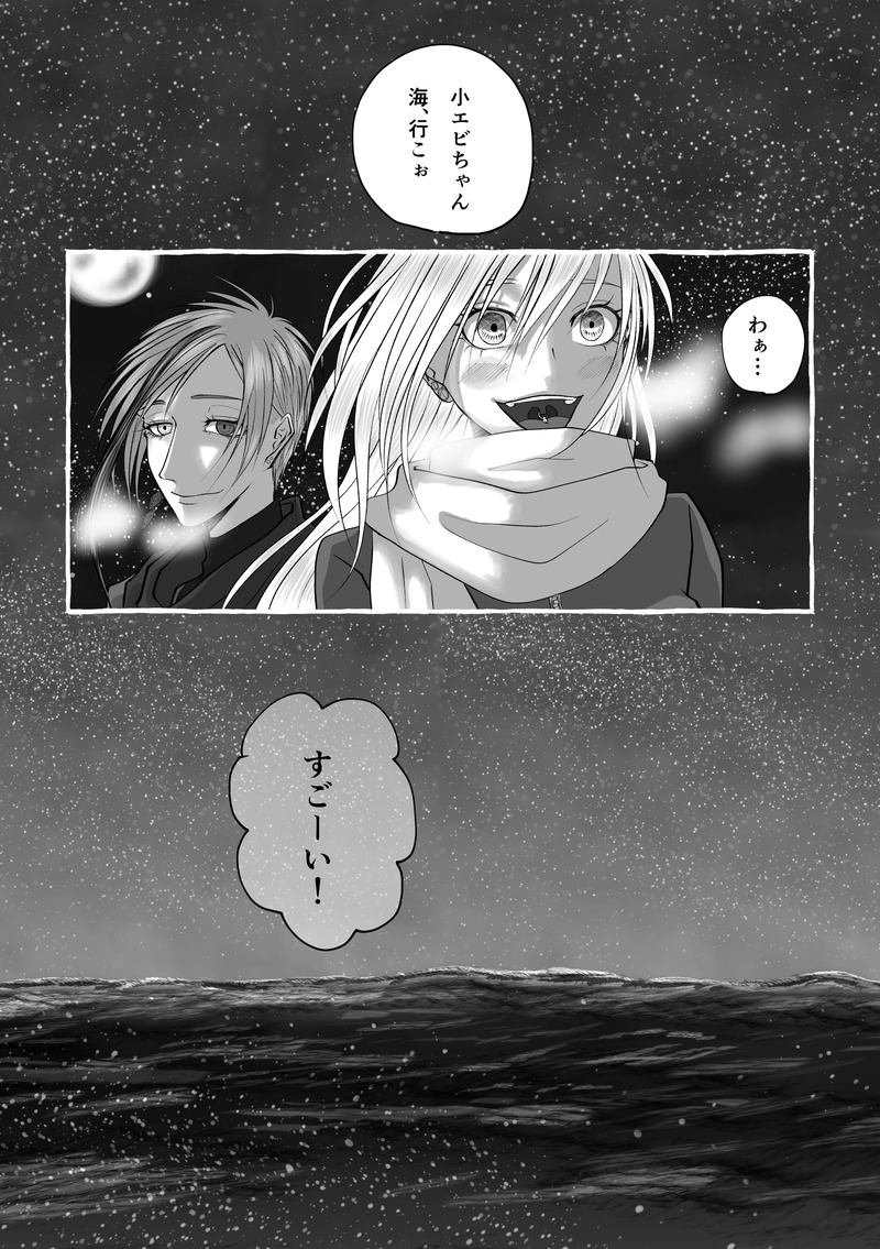 フロに誘われて夜の海を見に行くだけの漫画。