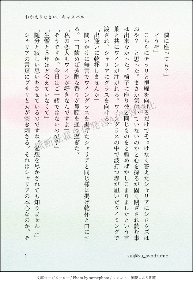 誤字脱字報告リクエスト等何かあれば: https://marshmallow-qa.com/su_syndrome