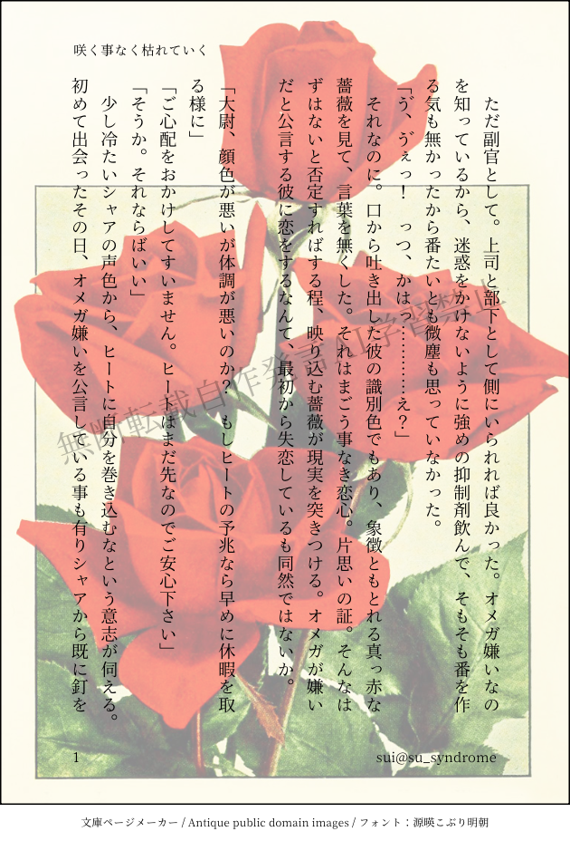 シャアシャリ。花吐き病とオメガバ掛け合わせた、オメガ嫌いな🟥設定ネタ。ある日花を吐き出して🟥に片想いしてると気付き、花吐きながらヒート中一人部屋の中で好きになってごめんなさいって泣く🟩の話