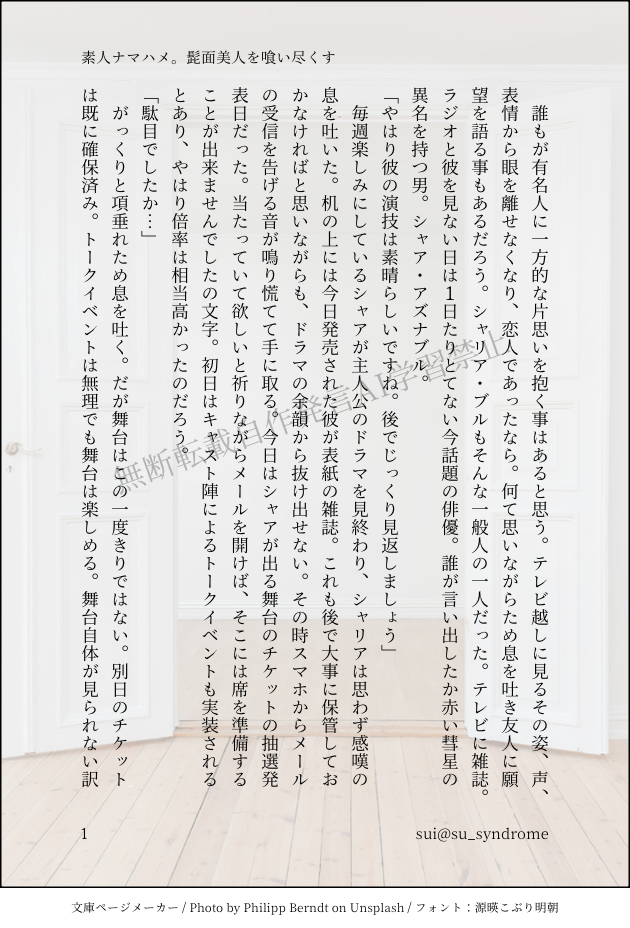 誤字脱字報告リクエスト等何かあれば: https://marshmallow-qa.com/su_syndrome