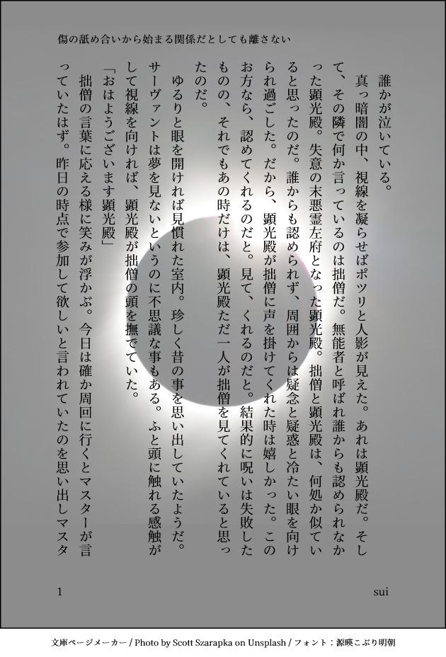 FGO書きたくて仕方なかった顕道。心象世界でのやりとりメイン。傷の舐め合いから始まる恋があってもいいでしょう?