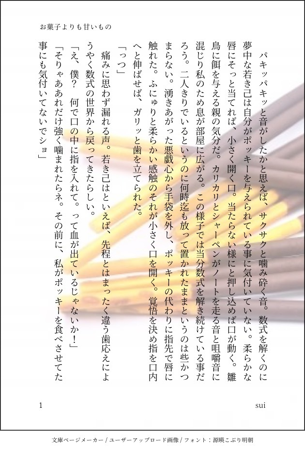 FGOモリ若モリでポッキーの日ネタ。モリに言われてポッキーゲームする若モリの話。食べ物の口移し表現有