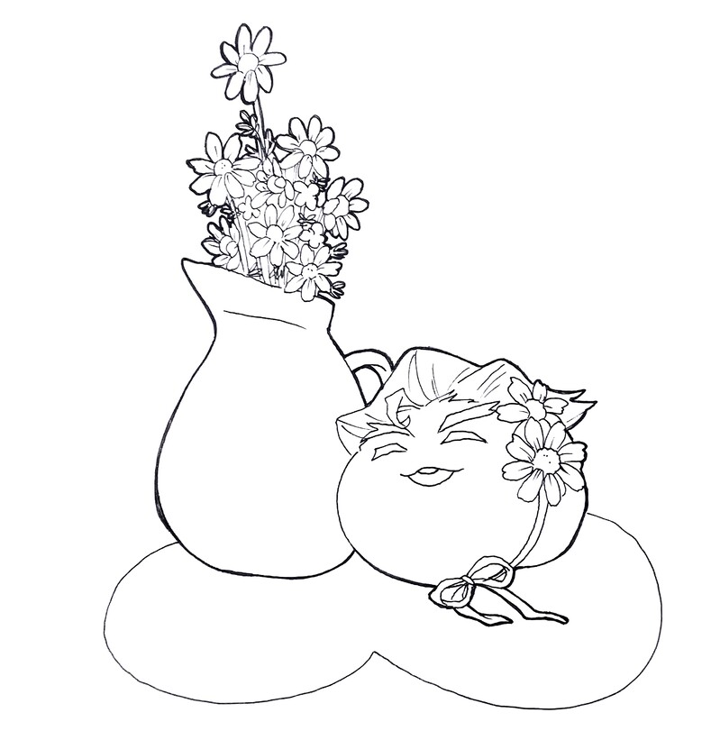 にょきにょき伸びるカモミールを嬉しそうに見上げるおまんクちゃん
