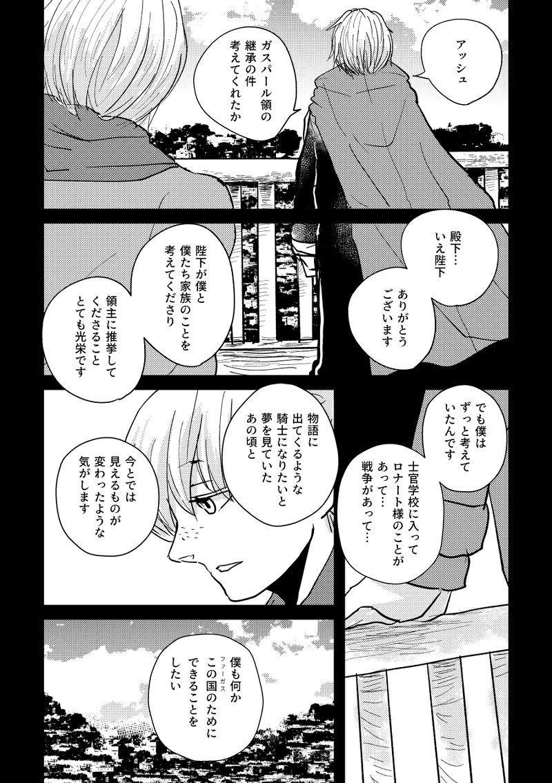 2022/11/3【3年目の同窓会】展示漫画。蒼月ルート後にフェルディアに移住してダスカー料理を専門に出す宿場を開いたアッシュの店で青獅子学級の皆が同窓会をする話です。アッシュとドゥドゥーのペアエンドとアッシュとディミトリの支援会話が下敷きになっています。CPはない話です。ダスカー料理はポルトガル料理をイメージしました!じゃが芋の存在は曖昧にしています!