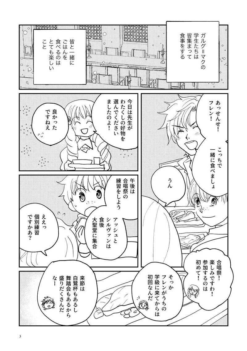 フレンちゃんと青獅子学級のみんなが蒼月ルート後のフェルディアで同窓会的なことをする漫画の冒頭部分です!!5年目の同窓会で公開した8枚に続いて+10枚、18枚目まで展示します!続きはおいおいまた描きたいです……!!ドロテアちゃんが青獅子学級にいるルートでアッシュくんは王都で居酒屋をやってます。