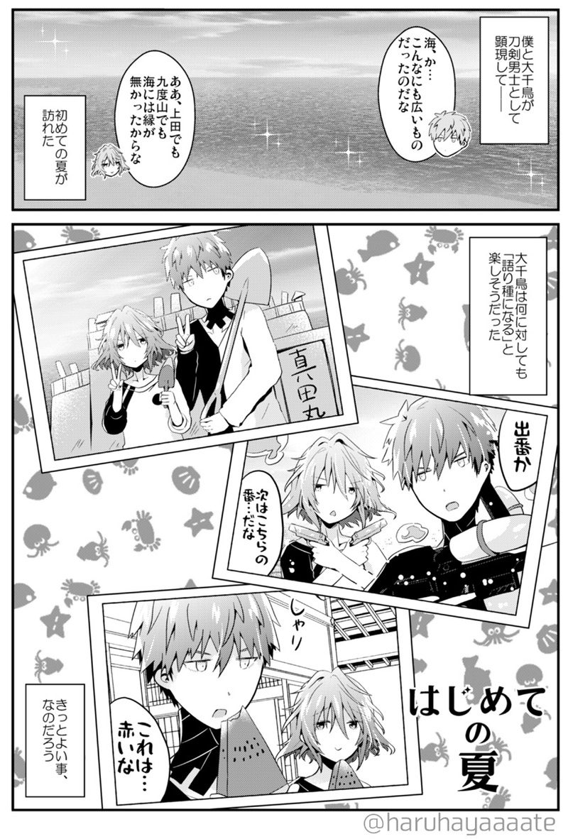 haruhayaaaate☆quiet followDONEちどはん漫画『はじめての夏』二振りが本丸に顕現して初めての夏のおはなし8/22エアブーの拍手おまけ漫画です(内容は8/22インテ配布のペーパー漫画と同じ)エアブー期間終了につき全体公開しました拍手を下さった方、本当にありがとうございました! #ちどはん localFeudalLord show all(+3 images) Tap to full screen (size:812x1200).Repost is prohibited Let's send reactions! freqpopularsnackothersPayment processing Replies from the creator Follow creator you care about!☆quiet follow haruhayaaaatePROGRESS8/17夏インテ閃華で無料配布&エアブー拍手のおまけだった真田組&面影さんの本準備号CP要素なし/全年齢※このあと最終的に和解します※全体公開にあたってとある1コマの台詞をマスクしてます(本ではマスクなし) 11 haruhayaaaateSPOILER(士伝ネタバレ有ver)大体情緒狂わせてくるシーンがあるステ政府刀コンビ情緒狂わせてくるシーンがあるっていうか真田組はもともと推しだったところに无を浴びたので綺麗に焼き払われた何なら天の時からやばいニコイチ臭を漂わせていたので既に焼かれてた haruhayaaaateSPOILER士伝大阪現地(主に日替わりネタ)の記憶あまりにもかわいすぎて描いて記憶に残しておかねばと言う感情に駆られたので…※ネタバレ※幻覚を見てたかもしれない haruhayaaaateDOODLE祝装ちどはん2種(R18) ※3~4枚目台詞擬音差分隠れてこっそりひらひらで隠して致すやつ透け透けはね…濡れると更に透けて肌にぴっとりくっつくんだよ… 4 haruhayaaaatePAST※人の形を成してなかった時の大千鳥さんがいる※触手注意新OPのフラスコ、こういう「男士未満」のナニかから男士生み出してそうで大変テンション上がりました原型試作本上巻(R18)https://namazu-chaya.booth.pm/items/4374444冒頭より火の鳥復活編オマージュ 7 haruhayaaaateDONE10/27閃華のハロウィンちどはん漫画ペーパー(R18)ですCOMIC CITY SPARK ONLINE -241027- https://air-boo.jp/524189/の拍手おまけ漫画にもしていたもの(エアブー終了したので全体公開に切り替えました)いちゃらぶパート+魔女泛塵くんに玩具使いつついたずらえっちするやつ 7 related works haruhayaaaatePROGRESS大千鳥さんがうしろから激しく何度も求めるので疲労困憊状態になっちゃった泛塵くん(大千鳥さんは元気)このあと例のピンクのお薬を飲ませてもっと致しちゃう…というペーパーが5/3スパコミ閃華で出ます※グラ的にスプレー式っぽかったけど飲み薬の方がえっちだったので飲み薬にしましたあれ絶対やばい薬だと思う haruhayaaaateSPOILER无伝無料配信があるので個人的にヤベエちどはんのシーン(のほんの一部)をまとめましたネタバレもネタバレなんだけどとにかくヤベエと言う事を伝えたかったこれが公式メディミからお出しされたという破壊力個人的一番のシーンはあえて乗せてないのでぜひ…8/1 19時~の天伝と8/2 19時~の无伝配信…よろしくお願いします…!(ちどはん目当てならぜひ天伝から見て…既にヤベエから…) Na_sodiumDOODLE女体化注意腕に乗るおっぱいが描きたかった 2 si_twuSPOILERちどはん楽屋 🤣(无伝舞台裏)わたしの記憶が正しければ、こんなものを見た気がする🤣あの状況、秀頼サマが居なかったら完全に事前か事後だった🤣(入浴も済) 2 haruhayaaaatePROGRESS軽装ちどはん本、(主にR18シーンで)大千鳥さんの左側からのショットが多いせいか画面が全体的に黒くなった気がします泛塵くんのインナーは若干迷ってたんですけど、結局性癖に素直にdosukebeインナーになりましたあんな清楚に着物着てる下がsukebeなのはたいへんいいとおもいます si_twuDONEあ…汗 2 haruhayaaaatePASTキスの日ちどはんセレクション(微えろ&不穏なのしかなかった)キスと言うか粘液交換… 2 hana.otoDOODLEしあわせちゅーは不定期摂取したい(ちどはん) hana.otoDOODLEとある晩のちどはん、攻め○ェラ