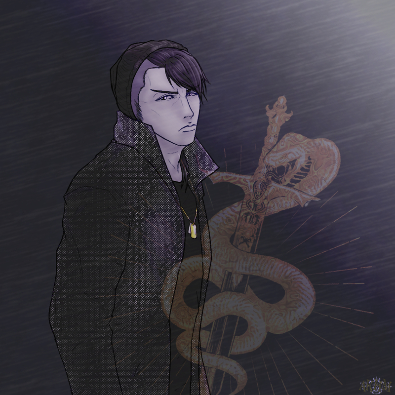 毒蛇、コブラ、刃、ナイフ、隠、影、黒、紫。