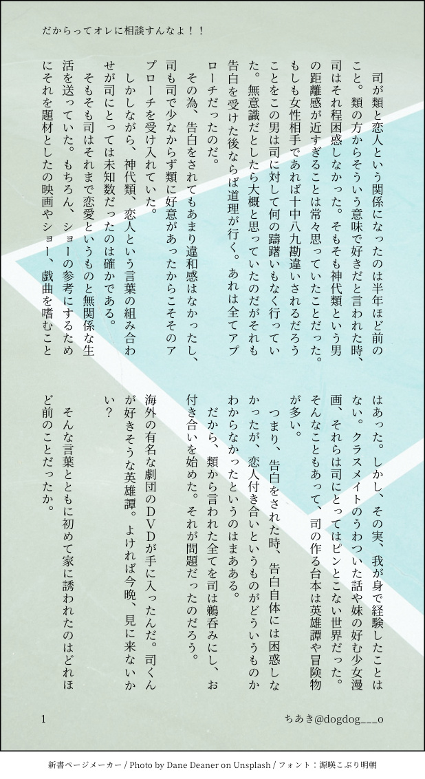 ちあき☆quiet followTRAINING🎈🌟彰人くんを困らせたかった節がある。6枚目だけ単独、特殊解釈。 show all(+5 images) Tap to full screen (size:618x1132).Repost is prohibited Let's send reactions! freqpopularsnackothersPayment processing Replies from the creator Follow creator you care about!☆quiet follow ちあきMENU狛日成人向AVアンソロジー濃密♡Lovenest(ラブネスト)冊子の表紙と裏表紙になります。パッケージには狛枝日向共に黒目線が入ります。成人の方のみ閲覧ください。🔑 狛枝の背番号+日向の胸囲 ちあきDONE犬向くんオンリー用にかいたお話を全体公開します。獣人の狛枝と日向の話です。1枚目に注意書きがあります。卑猥なことはそれほどしてません。 16 ちあきDONEARKROYAL(おにショタ狛日)の番外。日向が終わった日、狛枝が本性を出した日の話。🔑 背番号+胸囲+y/n 16 ちあきMOURNING以前に書いたモブ女性と結婚する日向くんのことが好きだった狛枝の話です。狛→日ですが、日向くんからの矢印は一切ないそういう話です。幸せにはなれません。大丈夫な方だけどうぞ。 4 ちあきDONEテーマ ホラー。現パロ寄りの未来機関。狛日の要素、限りなく薄い。カムクラというより破壊者くん寄り 6 ちあきDONE本編軸の狛日(R-18)5章2日目くらい。性描写ありますので未成年の方はご遠慮ください。パスワードは背番号+胸囲+y/n 6