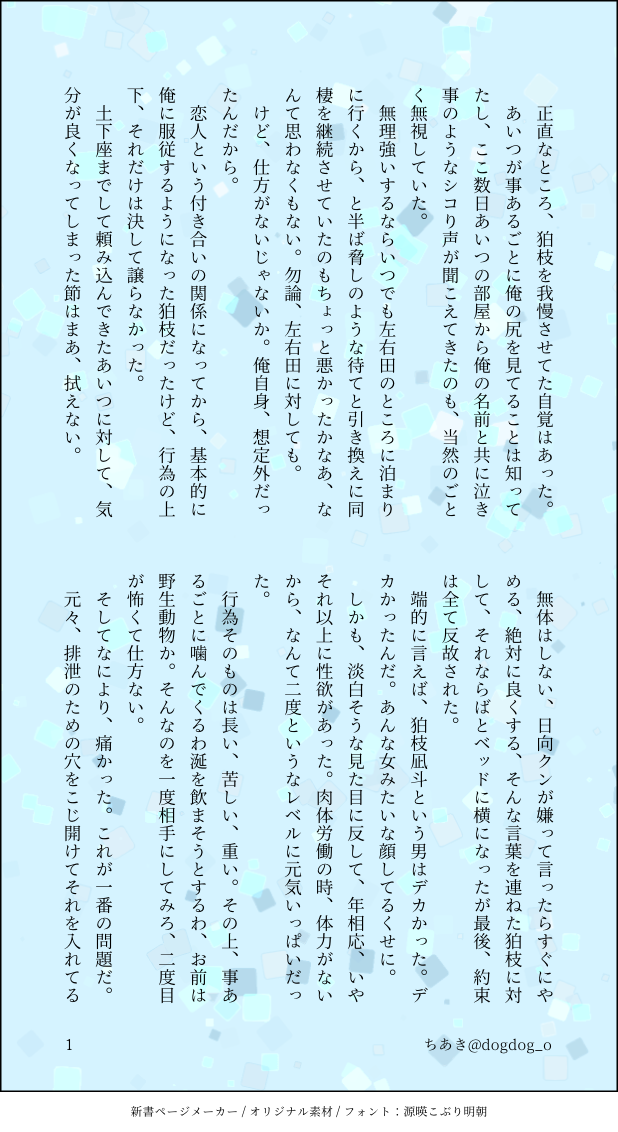 ちあき☆quiet followMOURNING待て!させられている狛枝と待て!してる日向 show all(+1 images) Tap to full screen (size:618x1132).Repost is prohibited Let's send reactions! freqpopularsnackothersPayment processing Replies from the creator Follow creator you care about!☆quiet follow ちあきMENU狛日成人向AVアンソロジー濃密♡Lovenest(ラブネスト)冊子の表紙と裏表紙になります。パッケージには狛枝日向共に黒目線が入ります。成人の方のみ閲覧ください。🔑 狛枝の背番号+日向の胸囲 ちあきDONE犬向くんオンリー用にかいたお話を全体公開します。獣人の狛枝と日向の話です。1枚目に注意書きがあります。卑猥なことはそれほどしてません。 16 ちあきDONEARKROYAL(おにショタ狛日)の番外。日向が終わった日、狛枝が本性を出した日の話。🔑 背番号+胸囲+y/n 16 ちあきMOURNING以前に書いたモブ女性と結婚する日向くんのことが好きだった狛枝の話です。狛→日ですが、日向くんからの矢印は一切ないそういう話です。幸せにはなれません。大丈夫な方だけどうぞ。 4 ちあきDONEテーマ ホラー。現パロ寄りの未来機関。狛日の要素、限りなく薄い。カムクラというより破壊者くん寄り 6 ちあきDONE本編軸の狛日(R-18)5章2日目くらい。性描写ありますので未成年の方はご遠慮ください。パスワードは背番号+胸囲+y/n 6 recommended works 絕情飛行員DOODLE我不要了密碼924 12 kug_uraDOODLEちまちま頑張ってる新刊進捗殿下詰め。表紙の顔可愛く修正できてきたのでは 4 NebulaHorns 🔞DOODLER18, I guess..?🌋♈ (Blazelust), basically the dino biting the incubuspw: 18↑? (yes/no) よつばDOODLE【創作】格付けネタ 風情を嗜むアンドロイドであれ yosora_PROGRESS『戴冠式』頑張って描いたけど、色塗れるかわかんないからとりあえず… 🏖🐬DOODLE--2025/1/2-- hxp147258DOODLEイヴサンローラン革薄型 アイフォン16/15/16Pro/16pro max/16Plus/14/13ケース https://foolcase.com/goods-ysl-iphone15-15pro-case-371.html れななPAST #ありころりん maru_hakidameDOODLE12/15の無配です。憂太さんがふたなりです。乙棘です。PASS:成人済ですか?(y/n) 4