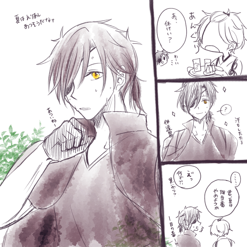 光忠さん絶対夏場襟足暑いよなぁ…結んでたら可愛いなぁ…からのらくがき※燭歌