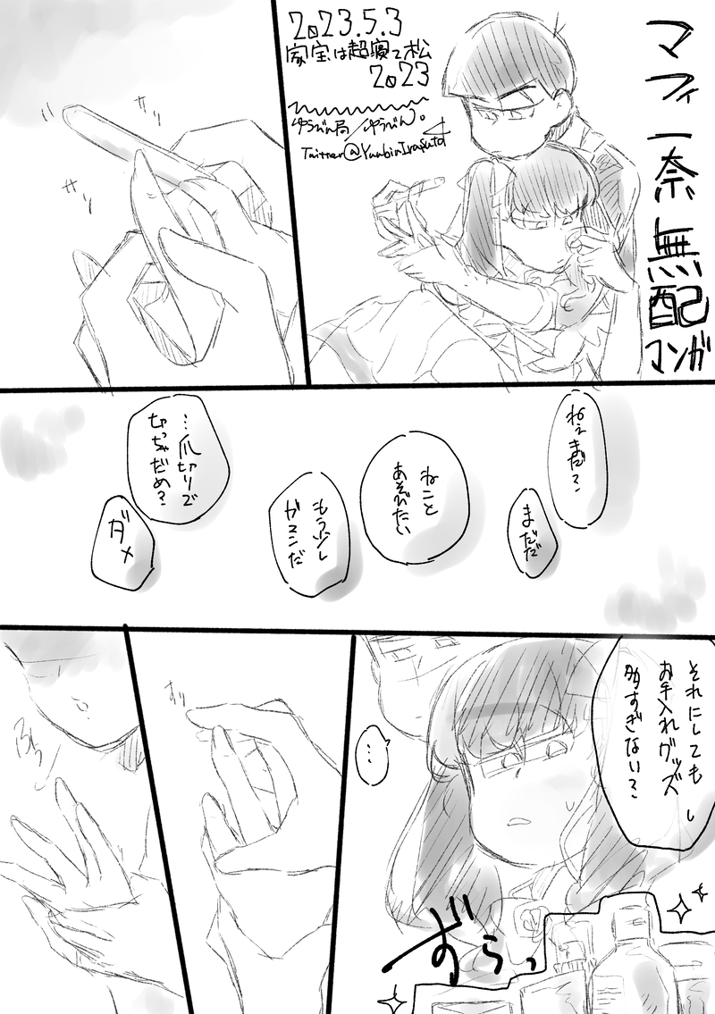 ゆうびん。☆quiet followDONE2023/05/03家宝は超寝て松2023マフィ一奈の無配漫画と差し入れ絵です差し入れ絵の衣装はおそ松さんショップ新潟のやつです show all(+2 images) Tap to full screen (size:1748x2480).Repost is prohibited Let's send reactions! freqpopularsnackothersPayment processing Replies from the creator Follow creator you care about!☆quiet follow ゆうびん。DOODLE6つ子誕と差し入れ絵 2 ゆうびん。DONE7周年のときの ゆうびん。DOODLEジャージメイドのやつ 2 ゆうびん。DONE 5 ゆうびん。DOODLE2024/06/30の無配と差し入れイラスト頭空っぽにして読んで下さい 9 ゆうびん。DONEポイピクに上げてなかったことに気づいたので