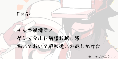 げすいどう☆quiet followMOURNINGF×Gr自分で描いておいて解釈違いを起こしかけました。自衛可能、無理を感じてバックします、何でも来いな方は良いのではないかな…🔒️をかけます。(🔑:GKO席任) show hide show all(+11 images) Tap to full screen (size:500x249).Repost is prohibited Let's send reactions! freqpopularsnackothersPayment processing Replies from the creator Follow creator you care about!☆quiet follow げすいどうDOODLE落書き(gr×m/s×m)サメパジャマとπが主です 6 げすいどうDOODLE年齢操作が常時になってきている…何か別の物に手を出すべきか?操作対象gr/s🔐(フグ-u) 3 げすいどうDOODLE他のCPを考えるなど。誰かが描いてるから私は良いかなって…Gr×灰/f×s🔐(Y/N) 5 げすいどうCAN’T MAKE癖強同人誌s×mかモブ×mが見たい故に妄想した表紙。お話は書けないから…(R指定)🔐→小五ロリ 5 げすいどうDOODLE年齢操作赤首組。Fレさん多め。健全だな!ほんのりF×B…かもしれない 5 げすいどうDOODLE🎙️ニキを右に!!(いつもの)色々詰め込んだね…🔐→金銀の🌙⚾️で捕まるpkmnの条件道具左(S/Gr/mob) 10