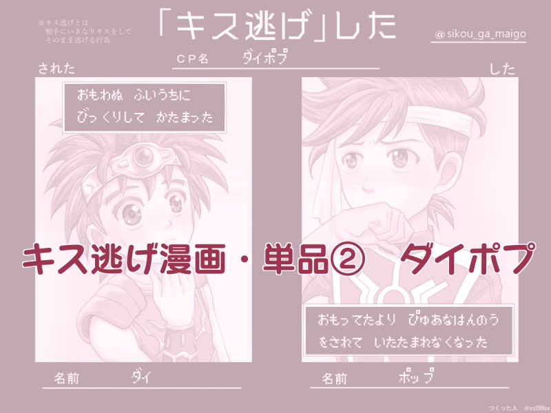 とにかくダイとポップの組み合わせが大好きです。このふたりがお互いを大好きで仲良しなら受け攻めはどちらでも良い、CP未満の強めの友情もリバも美味しく頂けてしまうという性癖の持ち主なのでご注意くださいませ…!