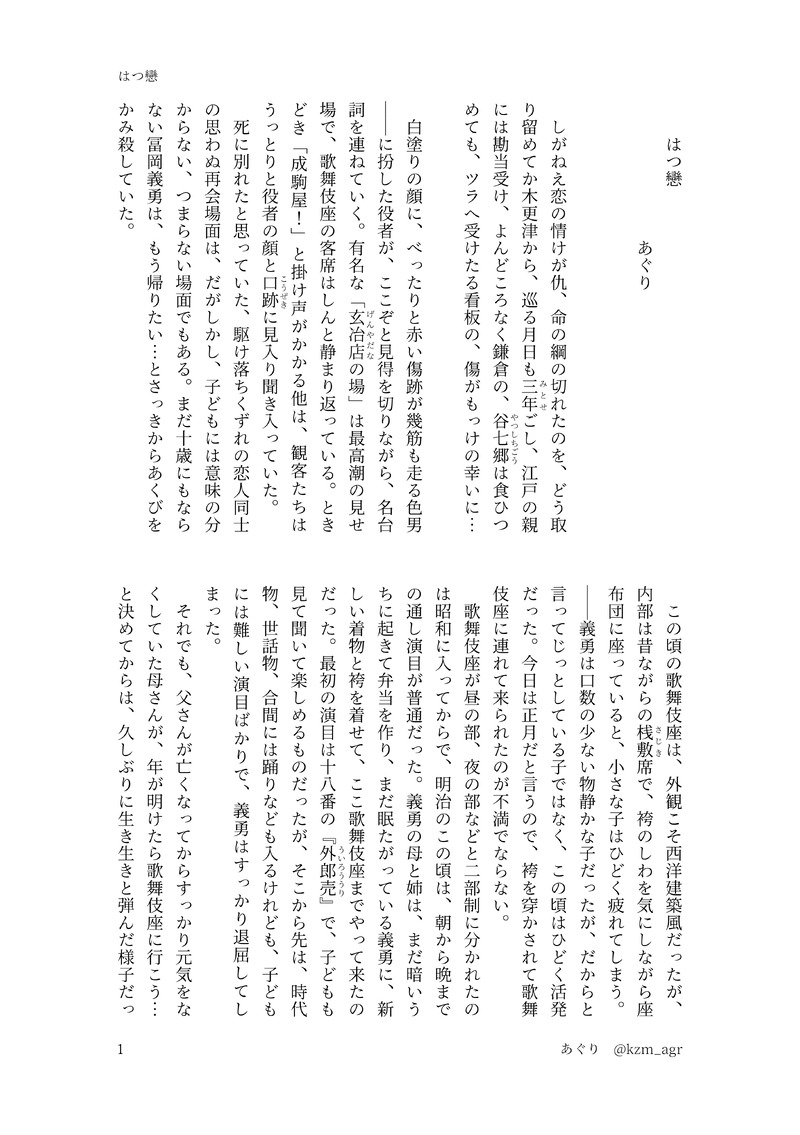 あぐり @kzm_agr のポイピク垢です。字書きですがたまに絵も描くかも知れません。今のところはkmtの煉炭、ぎゆさね中心 ☆quiet follow Yell with Emoji POIPOI 15