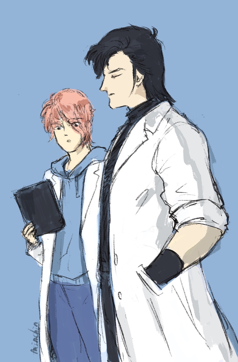 先生の腕を描きたかったんだと思います。譲介さんの服装が適当でごめんね。