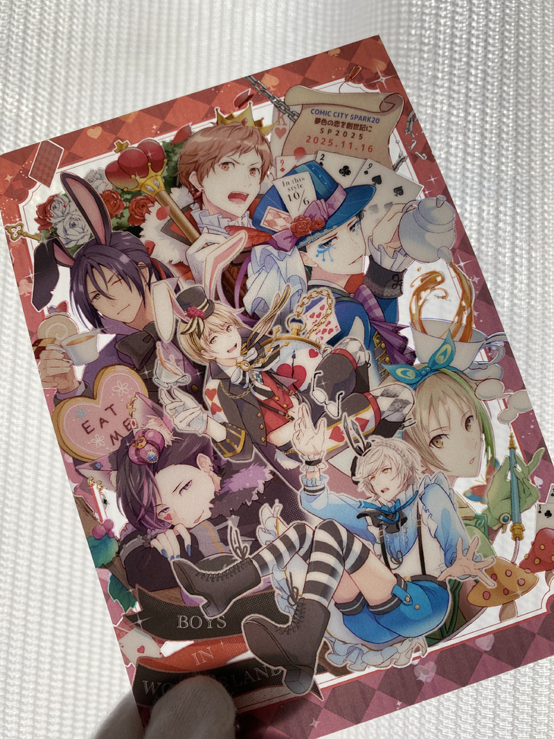実は、お誕生日絵まとめ本を買って下さった方にノベルティとしてお渡しするつもりで作ったのですが、印刷所さんが余部をたくさんつけて下さったため(たくさんどころか多分0が1個多いレベル)、来てくださる方と通販の方全員にお渡ししても十分な枚数。なにか良い頒布方法を考えます。