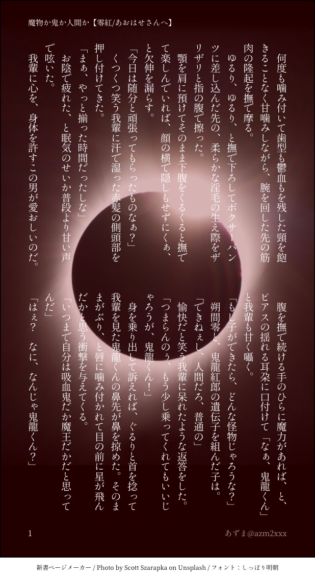 あずま☆quiet followMOURNING零紅2020.6 捧げもの ##あんスタ show all(+2 images) Tap to full screen (size:618x1132).Repost is prohibited Let's send reactions! freqpopularsnackothersPayment processing Replies from the creator Follow creator you care about!☆quiet follow あずまTRAININGジョルミステーマ:I LOVE 2 あずまTRAININGいこゆばテーマ:雨音に包まれて あずまMOURNINGいこゆばキスの日短文 あずまDONEエワ11 展示②いこゆば花粉症でデートが台無しになるのを抵抗するいこさん あずまDONEエワ11 展示①迅弓場マニアックな理由で弓場さんにキスしたい迅さんのSS あずまMOURNING敬紅■お題「パッチワーク」#紅首nドロ企画 2