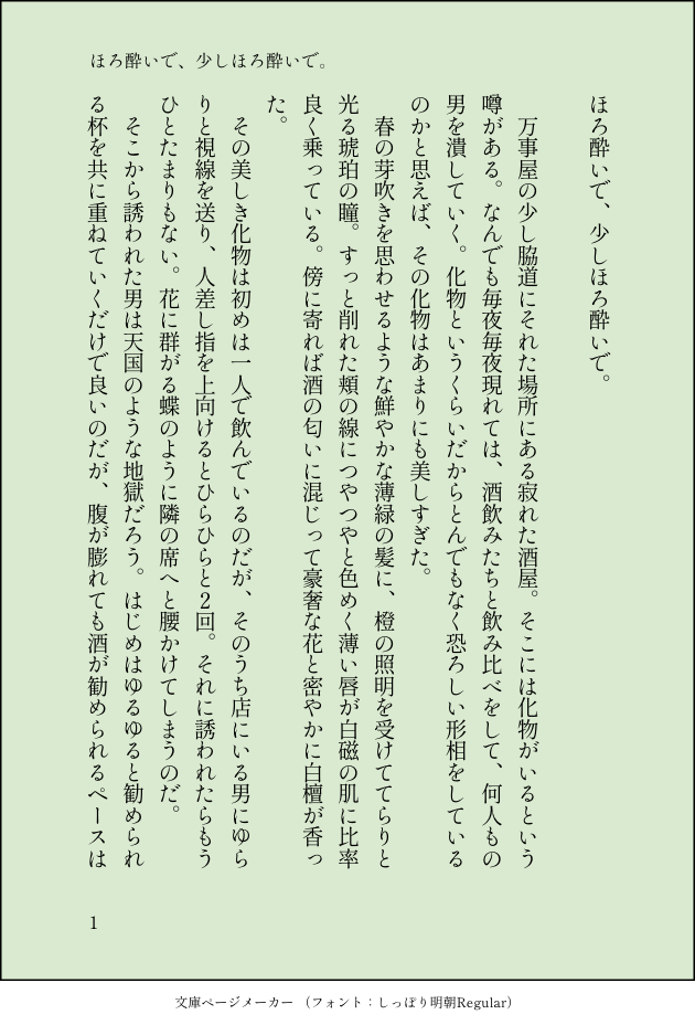 長靴ー☆quiet followPROGRESS酒呑み膝くんの進捗です!お腹が空いたのと壽が届いたので今日はここまでです。明日には完成させたい… #髭膝 show all(+7 images) Tap to full screen (size:630x928).Repost is prohibited Let's send reactions! freqpopularsnackothersPayment processing Replies from the creator Follow creator you care about!☆quiet follow 長靴ーDONE酒呑み膝くんの髭膝です!ようやく完成いたしました〜。酒が飲めない人間が書いていますので、おかしいところばかりだと思いますが、そこには触れないでいただけるとありがたいです💦 11 長靴ーPROGRESS酒呑み膝くんの進捗です!お腹が空いたのと壽が届いたので今日はここまでです。明日には完成させたい… 8 長靴ーDONE2度目の夜を誘う膝丸♀ちゃんにしたかったお話です。久しぶりに書き物をしたので訳のわからないものが完成しました!リハビリなんで許してください! 12 長靴ーPROGRESS酒飲み膝くんの進捗です〜〜〜早く再会させたいですねぇ… 3 長靴ーPROGRESS髭切×膝丸♀で処女は面倒本で知った膝丸♀ちゃん奮闘記の途中経過です…もしよかったら読んでやってください。 4 長靴ーDOODLE「その日、姉さんは帰ってこなかった」(髭膝♀)の小話になります。本編を読まなくても、山姥切国広と膝丸が女体化していて、その上山姥切国広が膝丸を姉のように慕っているということを念頭に置いて読んでいただければ、恐らくわかると思います。本編はプライベッターに載せてあります。 4 related works だいたい七割DOODLE 2 だいたい七割DOODLEラフと清書 赤面 弟のみ つもりで描いてる 3 パイナップルそばまんじゅうPROGRESS初夜でしていい体位じゃないんだわ め ろDOODLE我慢できずにアレな髭膝を描いてしまいました(R15くらい) 2 うすいPROGRESS普通に間に合いませんでしたよね 長靴ーPROGRESS酒飲み膝くんの進捗です〜〜〜早く再会させたいですねぇ… 3 うすいPROGRESS事後丸♀とにじゃ 灯野くずはPROGRESS7月12日の大阪で知己のサークルさんが配布してくれる髭膝ペーパーの漫画の進捗。 4 あっきではないBLANK媚薬盛った髭膝「兄者はよっしゃぶち犯すなんて言わない」 recommended works I_5sukeDOODLE #髭膝 リーズPAST試運転兼ねて源氏ちゃん過去絵 40 いねりTIRED※腐絵注意pgpzのスキンシップがかきたかくて結構がんばってたのだけど逆光加工したら怖くなるし背景はかけねーしもうやーめた!!てなった絵 うすいPROGRESS事後丸♀とにじゃ やしおひさのDOODLE自分でも何やってるかわかんなくなってきた。世は兄者の修行前夜で、なんだか落ち着きませんね。その結果がこれとは。かわいくてかわいくて仕方のないちかしい存在って口付けたくなってしまうように思うのです。※先日の髭さに本丸とはもちろん別本丸です。 2 パイナップルそばまんじゅうDOODLE2コマ 2 灯野くずはPROGRESSこれは髭膝原稿。 2 ちゃんこ鍋PAST初投稿です!花札集めのイベント中に描いてたものです。髭膝の香りがします!!わんぱく本丸の膝丸と通常サイズの膝丸くんが仲良くしてるの永遠に眺められる!!!おっと誰か来たようだ… 2 村上ナナPROGRESS髭膝サクカ下描きこねくり回しちぅ