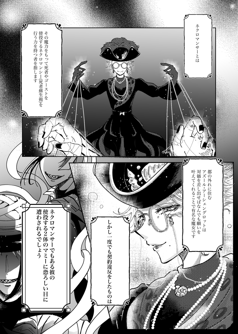 ネクロマンサーアズールと彼が使役するマミージェイド&フロイドのちょこっと物騒&アダルティな気配のお話(性癖なので何度も煎じてしまう魔力供給うんぬん系)勢いだけが取り柄なのでデティールは優しい眼鏡で補完お願い致します🤲