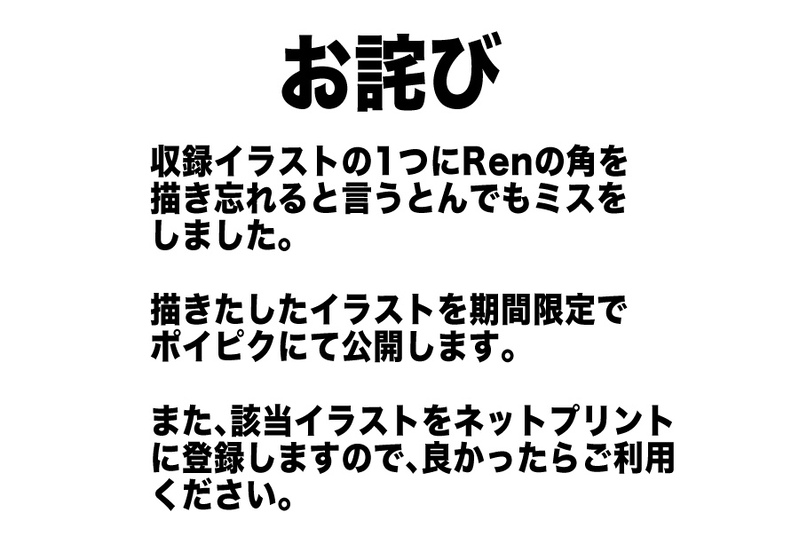 収録イラストの1つにRenの角を描き忘れると言うとんでもミスをしました。