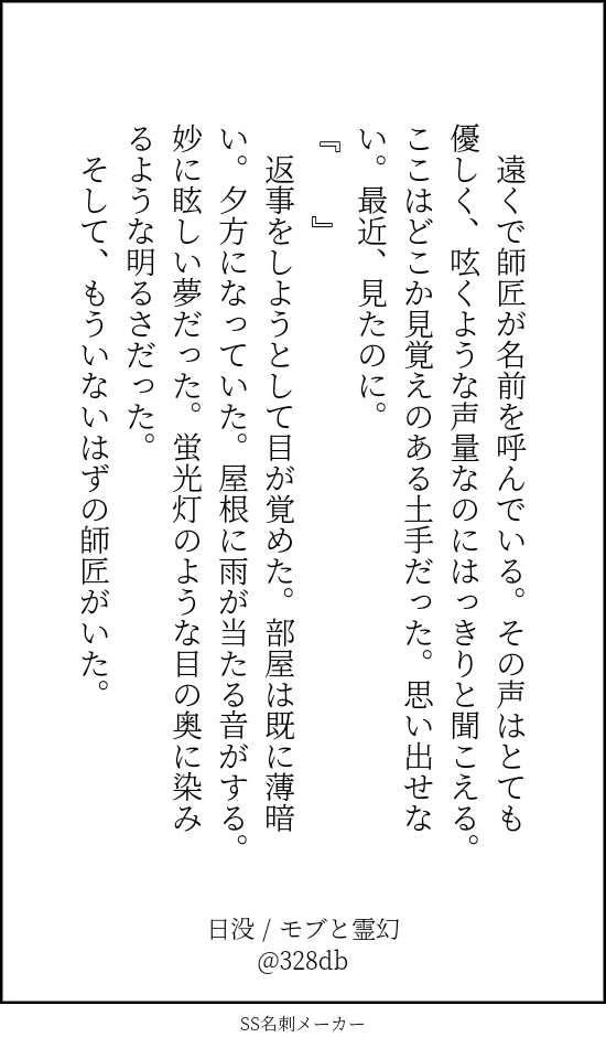 328db☆quiet followDONEモブ霊発作的に書いたもの #モブ霊 MobRei ##モブ霊 show all(+3 images) Tap to full screen (size:550x950).Repost is prohibited Let's send reactions! freqpopularsnackothersPayment processing Replies from the creator Follow creator you care about!☆quiet follow 328dbDONE兵皆SS詰め2025/02/22〜ぜっちるwebオンリーイベント『白紙の未来』のその先へ!4th、開催おめでとうございます! 3 328dbDONE(モブ)霊とエクボ霊幻がクソ男でエクボがかわいそう。阿部定事件見てたら書きたくなった。しげお、ごめんね。 1004 328dbDONE感染対策はしてこいよzoomセックスするモブ霊シテイシティ一周年のお題企画そのいちzoomセックスってセックスなのか!? と思いながら書いてましためちゃ楽しかったです〜! ありがとうございます💐結局最後までできなかった……! 3497 328dbDONE猫耳モブ霊(偽)SINK, SLOW, DOWN初版の通販時に同封したペーパーを手直ししました。シテイシティさん、一周年おめでとうございます!!!! 2300 328dbDONEたわむれモブと隆子タイトル通り。ちょいすけべ。 328dbDONE梯子モブと隆子(♀霊)すけべ一歩手前 2 related works nyagwam1219DOODLE1125モブ霊風呂の日と聞いていても立ってもいられなかった km__222DOODLEモブ霊(霊ばっかり)エロ落書き詰め⚠︎年齢操作なんでもありですpass→18才以上ですか?(yes,no) 2 SairleBDOODLEOmega Reigen in heat (or something). humi0312DONE2236、社会人になって新生活を始めたモブくんが、師匠と通話する話。cp感薄めだけれどモブ霊のつもりで書いています。シテイシティさんのお題作品です。故郷は、 1305 kuchiasobiDOODLEモブ霊(成人かな?) humi0312DONEシテイシティⅡ春祭り開催おめでとうございます!四月と桜にまつわる師弟からモブ霊になる1125→1327→1529→2337→5871の二人の話です。パスワードは師弟の日です(4ケタ)!「お前と見るのが良いんだからさ」 5909 kuchiasobiDOODLE【モブ霊】なんで飲めないのに連れてってくれたんですか 3 humi0312MOURNINGこれはできたら本にしたい……。まだ子どものモブくんと、師匠からモブくんを好きになる話。 2651 ewo6_6ewoDOODLEカップルリバーシについて見解を深めたらくがき recommended works 蜂目ちょき。DOODLEパーカーポチりました… 蜂目ちょき。DONEスイパラ楽しかったです hagibooDOODLE美味しく召し上がれ☺️ motimotinomoti4DOODLE例のアレです(ケモミミ)18↑?yes/no pyr129001enDOODLEモブ霊ラクガキ漫画+普通イラこういう雰囲気すき 3 mobjiro_hachiMEMO【あとがき】2022年11月12日発行「BURN HIM!」の長いあとがきです。どなたでも読める形にしていますが、本文のネタバレ全開なので閲覧は自己責任でお願いします。■11/30 少しだけ加筆修正しました。 37 nurumayu100PASTわ先生のおまけイラストの捏造話 7 nurumayu100PAST夏のおわりの話 10 motimotinomoti4DOODLEギザモブ霊です 2539ってえっちだな…18↑yes/no