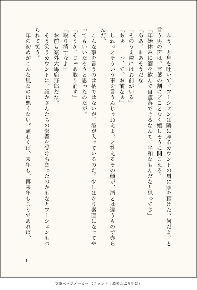 雪飛椎菜☆quiet followDONE年始カウフーです ##エスコン show all(+1 images) Tap to full screen (size:630x928).Repost is prohibited Let's send reactions! freqpopularsnackothersPayment processing Replies from the creator Follow creator you care about!☆quiet follow 雪飛椎菜DOODLE致そうとしてるだけの也宮落書きパスは不純異性交遊発言回 雪飛椎菜DOODLE絵師ボタンのやつでベビードール宮坂さんと也宮パスは不純異性交遊回 2 雪飛椎菜DOODLE也宮すけべパスワードは不純異性交遊発言回 雪飛椎菜DOODLE也宮が致してるだけの落書きパスワードは不純異性交遊発言回 雪飛椎菜DONE薄暗い一也くんな也宮を書こうとしたらべそべそしてる話になった 何故致してはいないけどそれらしいやり取りがあるのでワンクッション 6 雪飛椎菜DOODLE18↑?(y/n)アレな方の出られない部屋続きみたいな一也くんのアレ 3 recommended works 雪飛椎菜DOODLEエスコン7の落書きまとめカウフーとか拙宅トリガーとか 14 雪飛椎菜DONEカウフーエロ(未満)話 9 雪飛椎菜DONEき、今日はキスの日らしいぞ!ってフーシェンが思い切ってカウントに言ったら、ふーんってあしらわれたのでショックを受けてたら突然手の甲にキスされて、そういうのは記念日にかこつけてするもんじゃねえだろ、って手をひらひらさせながら去ってって、紳士か…!!ってフーシェンが撃沈するやつを踏まえた上でのカウフーキスの日 2 雪飛椎菜DONEエスコン6のタリズマンとシャムロックの話。終戦後の話なのでネタバレ注意。 7 雪飛椎菜DONEカウントとトリガーの話(カウフーを添えて) 4 雪飛椎菜DONEカウフーが出てこないカウフー(雰囲気エロ) 3 雪飛椎菜DONE言葉の足りないトリガーとカウフー 2 雪飛椎菜DONE突発的に書いたカウフー 2 雪飛椎菜DONEカウフー詰め 4