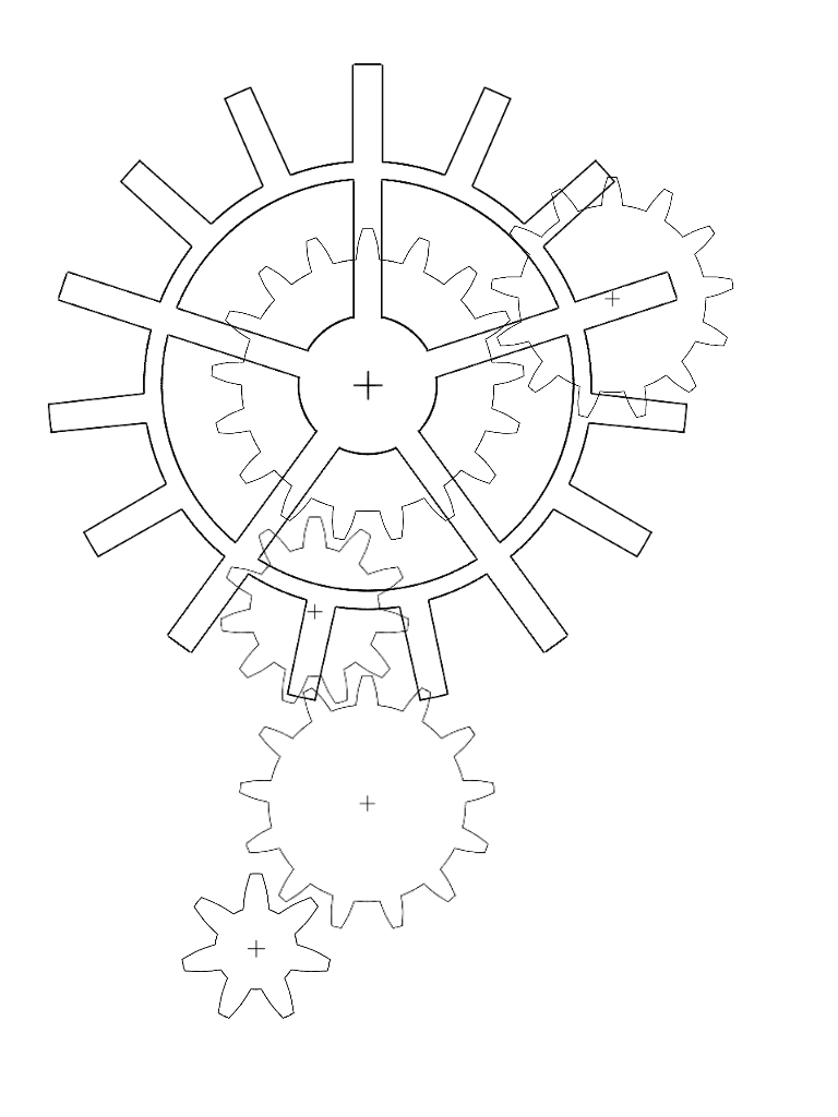 残念ながら工業系の知識は疎いので、この歯車群がちゃんと回るかは分からないです。