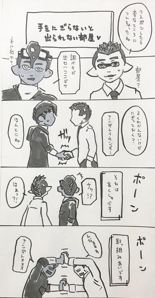 ヤギユノは手をにぎらないと出られない部屋に閉じ込められました。にぎっても、それは握手だといわれました。