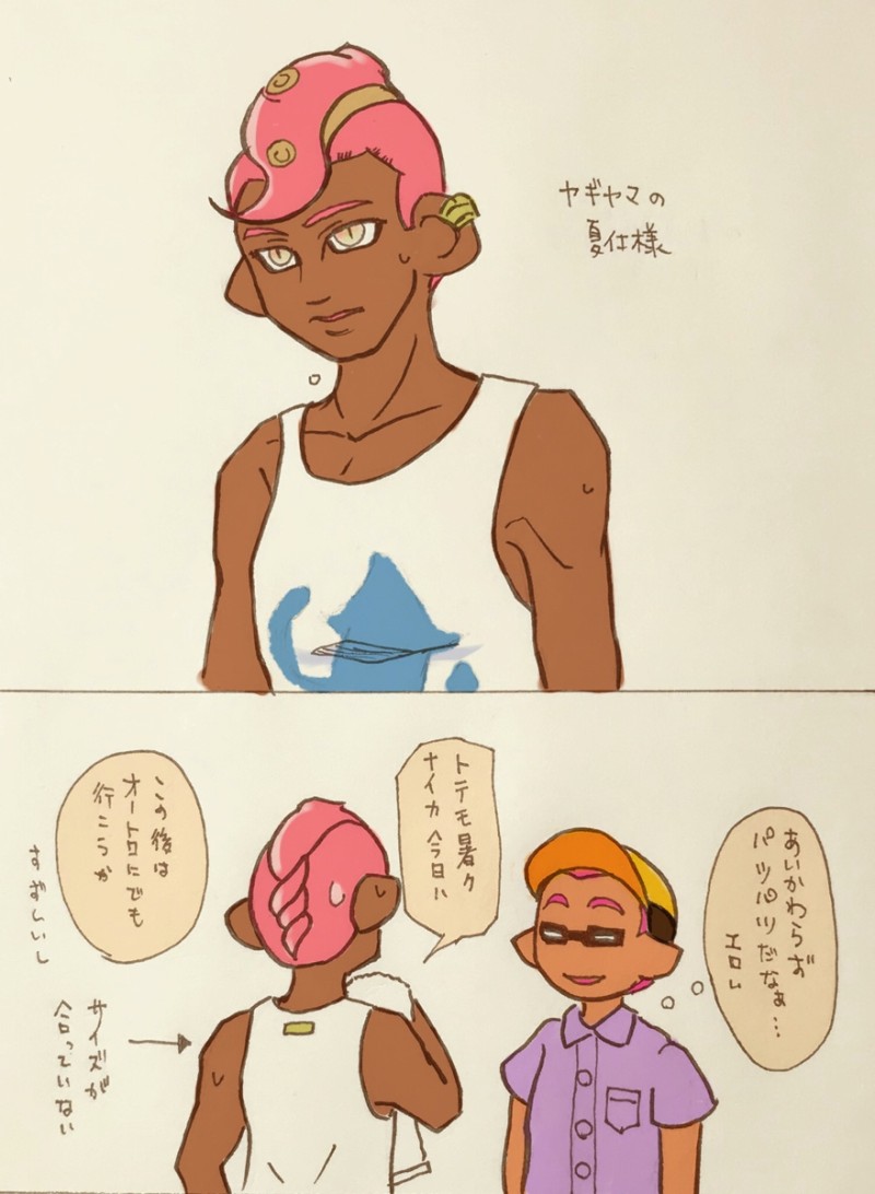 ヤギヤマは大体タンクトップ系。ユノは暑くてもギアの場合は襟付きシャツ。