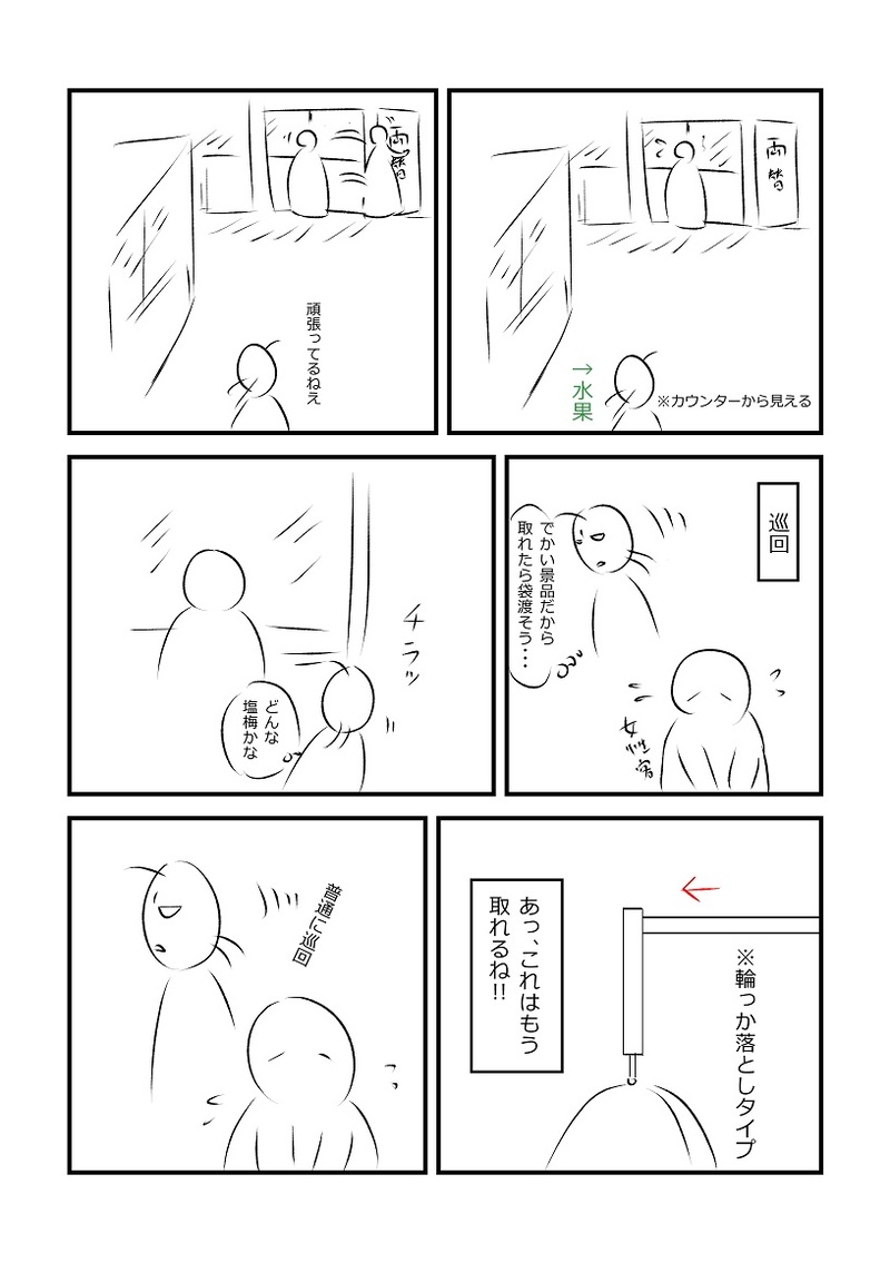水実水果(みなみみか)☆quiet followDOODLEゲーセンで働いてた頃の思い出です。作中にもありますが、わたしのやったことは見逃しといて下さい!!それから、誤解なきよう念の為いっておきますと、下手な人を馬鹿にする意図はありません。下手かろうが上手かろうが、設定がおかしい場合もあるので、金つぎ込んでも取れなかったら店員を呼んでね!と言いたいのです。※全然やってないのに「すげーやってるのに取れないんすよ~www」とかいうクソ嘘はバレてますよ。 #絵日記 diaryWithIllustrations show all(+4 images) Tap to full screen (size:816x1158).Repost is prohibited Let's send reactions! freqpopularsnackothersPayment processing Replies from the creator Follow creator you care about!☆quiet follow 水実水果(みなみみか)DONE地獄変28話~31話(完)。あとがきは最後の分だけ入れました。閲覧ありがとうございました! 48 水実水果(みなみみか)DONE地獄変23話~27話。あとがきは省きました。 56 水実水果(みなみみか)DOODLE青空にちょろっと出してたらくがきをまとめておきます。一枚目、ネタ被りしてたらすみません。漫画は一枚目だけで、あとはマジのらくがきです。二枚目のヤツは「髪をかき上げる男」のポーズを探してたら、想定したものとは違うポーズが出てきた、という日記です(笑)。追記:舞台の雑感想追加しました。 5 水実水果(みなみみか)DOODLE久々の絵日記です。さすがに写真は撮れんかった。 水実水果(みなみみか)DOODLE地獄変18話~22話まとめです。ピクシブから誤字脱字修正、若干の台詞変更があります。あとがきはめんどくさいので省きました。 51 水実水果(みなみみか)DOODLEよくある(?)伊藤潤二パロ絵日記風味。 related works はなまるFXDONE保育園の展示会のお話その2です。作品を管理する個人用ファイルを作っていてくださって、娘と一緒に見ていました♪ただどうやら未完成のままこっそり隠していたものもあり・・・(笑)照れ笑いと共に手で隠していて微笑ましかったです(*´ω`*) はなまるFXDONE冠婚葬祭でおめかししたときの一幕です(*^^*)久々のイヤリングにテンションの上がった娘さんでした(笑)何度も鏡を見に行って微笑ましかったな~ はなまるFXDONEアナ雪が大好きな娘さんは、2の曲が流れると一緒に口ずさみます♪ただ少し厳しいなと思うのが、きちんとアナ雪「2」と言わないと指摘されること(笑)1と2をしっかり別物として区別しているのですねぇ('ω') はなまるFXDONE普段が低体温気味&熱をあまり出さないせいか、微熱でもびっくりするくらい体がしんどく感じる時があります(´・ω・`)でも37度くらいで大騒ぎをした時はさすがにちょっと恥ずかしく・・(*ノωノ)と言っても、うつすと悪いので無理はしませんが(*´▽`*) はなまるFXDONE絵本や雑誌でドレスを見ると、どうやら創作意欲が湧くようです(笑)100均のお人形さんに紙とノリで上手にぺたぺたと・・・可愛いもの、綺麗なものが好きなのはやはり女の子だな~と思いますね(*´ω`*) はなまるFXDONE遠出のときは車で移動することが多いので、この日は珍しく電車でした♪隣の駅までなのですが、切符を買ったり改札を通ったりと楽しくポイントがたくさん(*´ω`*)なんだか冒険気分になるのですよねぇ・・・(笑) はなまるFXDONEご飯ももちろん大好きですが、パンも美味しいですよねぇ( *´艸`)パン屋さんに行った時のあの甘いパンの香りが最高に大好きです♪あの匂いをかぐだけでお腹が急速に減ってきます(笑)いつも絶対にそれ食べきれない!っていう量を買ってしまいます(^^;でも娘は行ってもジャムパン以外のパンに目移りせず('ω')ジャムパン一筋すぎる~です(苦笑) カルメ焼きREHABILI令和6年3月6日 はなまるFXDONEいつもはチラシを折り紙の要領で折って卓上のゴミ箱を置いているのですよね。一気に片付くあの感じが好きで(*´ω`*)ところがサンドイッチ用の容器で全て片付くことに気が付きました(笑)もう必須アイテムですね!