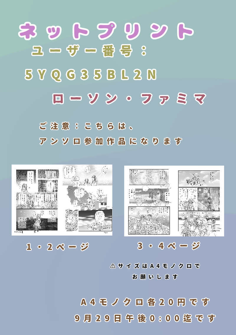 今回僭越ながら、ネットプリントアンソロに参加させていただきました。