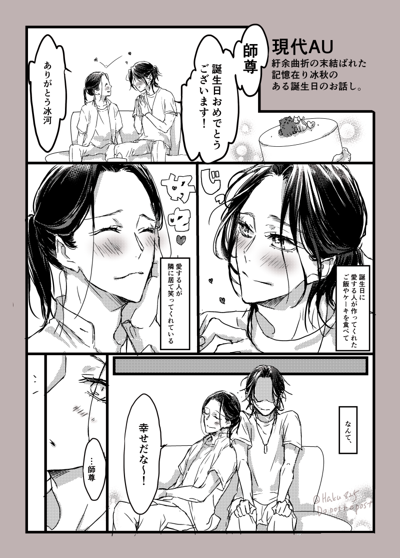 Haku825☆quiet followDONEOOC2で展示していた冰秋(+冰九?)記憶あり現代AUの誕生日漫画におまけを付け足しました!九の誕生日はどうなのかなって悩んだんですが現代だし良いかなっと!師尊は似すぎてる親戚。冰河は双子って言う設定。最後ちょっと不穏です。パス:師尊の誕生日(数字4文字) show hide show all(+6 images) Tap to full screen (size:800x1114).Repost is prohibited Let's send reactions! freqpopularsnackothersPayment processing Replies from the creator Follow creator you care about!☆quiet follow Haku825DONE5/27賀予の誕生日漫画です! 6 Haku825DOODLEえちな檀冷さま。 Haku825DONE子ども大人冰九+冰秋。クリスマス小話。2023.12.24:4枚2024.12.24:8枚一年越しで完成しました!(パス:キャラ崩壊を小英字3文字) 11 Haku825DONE冰壺秋月さはんWebオンリー開催おめでとうございます!2023Xlogになります! 31 Haku825DONE『9がつ21にち。』現代AU誕生日冰九漫画/R18https://poipiku.com/2641361/7541264.html(冰秋)の冰九編でハピエンではありません。(ハピエン主義なので続きは描きたいとは思ってます!)パス:キャラ崩壊のアルファベット小文字3文字 17 Haku825DONE 8