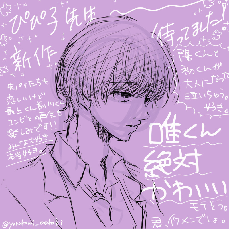yorukami_oekaki☆quiet followDOODLEこれは多分ワンクッション置かなくて良いだろうの顔。ぴぴ子先生の新作が嬉し過ぎていつものごとくファンアートを描いたわけですがなんか色々溢れ過ぎて意気込んで描いた唯くんより周りの文字がうるさくなったので反省しています😇すきです続きもソワソワ待ってますソワソワ…… Tap to full screen (size:1668x1668).Repost is prohibited Let's send reactions! freqpopularsnackothersPayment processing Replies from the creator Follow creator you care about!☆quiet follow yorukami_oekakiDOODLEまだちょっと探り探り描いてるサイダー・ビーツ一年生ズ……可愛いことだけはもうわかっているぞ……君たちかわいいでしょ………… yorukami_oekakiDOODLEこれは多分ワンクッション置かなくて良いだろうの顔。ぴぴ子先生の新作が嬉し過ぎていつものごとくファンアートを描いたわけですがなんか色々溢れ過ぎて意気込んで描いた唯くんより周りの文字がうるさくなったので反省しています😇すきです続きもソワソワ待ってますソワソワ…… yorukami_oekakiDOODLE【※女装】【前最】文化祭でロミジュリやってくれるって聞いたからいてもたってもいられなかったなどと供述しています。 yorukami_oekakiMAIKING【オールキャラだけど全力で腐になる予定】1/30 年が明けましたが1枚追加です。色々あったとはいえ遅筆でびっくりするね🙄11/6 季節感合ってきてるな?追加しました。8/13 尻叩きしたくて数ページ増やした。6/29 季節感がない予定で始めたけど完成する頃には季節に沿ってたら遅筆すぎて泣くやつなのでなる早で終わらせたいです(決意表明) 5 yorukami_oekakiDONE【人魂散歩】完成したのでオープンで投稿( ˘ω˘ ) yorukami_oekakiPROGRESS進んだ_(:3」z)_ recommended works まわぬDOODLEつれづれ 5 松岡京吾DOODLEそういやそこまでひっついた絵を描いたことがなかった。難しい 千三百一DONEメモマメイカ(85)「メイニャン」 うすみずPROGRESS8p/88p せんかDOODLE師匠に絡まれて沈黙してるのは図星だからです(似た者師弟) 星谷芽樂(井上詩風)PASTアイコンの絵(とその過程) 3 ありす(元うさ実、マネキネコ)TRAINING愛しさの体温漫画を描きながら練習もしています…が、これはちょっとラフ過ぎるかも💦晒してしまいました…🙏良い1日を☺️✨ ハトヤ@お絵描きDOODLE恵方巻たべました。#節分の日#創作イラスト 4時起きDONE【創作BL】3月から描いてた絵かと思ったら2月から描いてた…。既刊再販用の原稿送ったので問題なければ下旬には追納完了になる予定です。 2