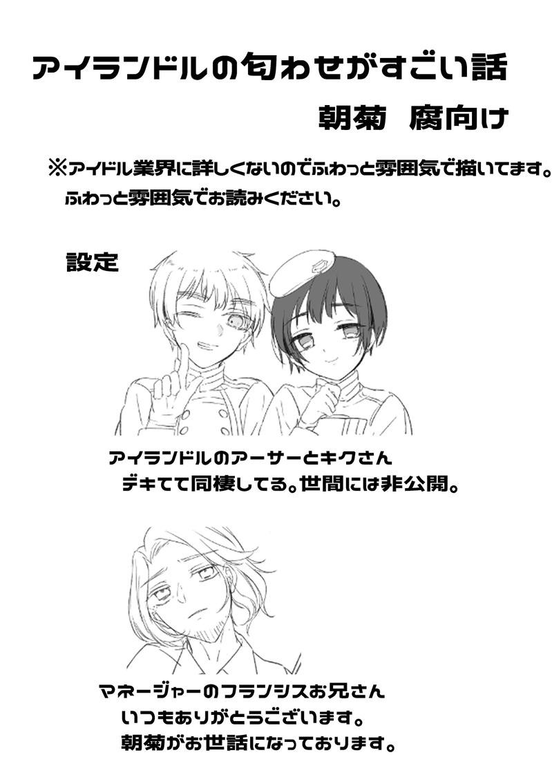 Toa_aph☆quiet followDONE【朝菊】StarAlliance_Islandol_1st_live_ 展示作品 開催おめでとうございます!ありがとうございます!! あんまりアイドルしてないですがアイランドルと言い切ります #朝菊 chaoChrysanthemum show all(+11 images) Tap to full screen (size:1220x1711).Repost is prohibited Let's send reactions! freqpopularsnackothersPayment processing Replies from the creator Follow creator you care about!☆quiet follow Toa_aphDOODLE例のポーズで足コキしてる4481 + 落書き数枚 5 Toa_aphDONE【朝菊】ほしまつ5展示作品の成人向け部分こちらの成人向け部分です。https://poipiku.com/2644505/11158855.htmlほしまつ5ありがとうございました!楽しかったです!展示期間には間に合わなかったのですが、せっかくなので、投稿させてもらいます。 8 Toa_aphDONE【朝菊】ほしまつ5展示作品ほしまつ5開催ありがとうございます!おめでとうございます!!朝菊に幸あれ~~※最初の注意書きをお読みいただき、大丈夫な方のみ閲覧をお願いいたします。 23 Toa_aphDOODLE4481 朝菊風味 もうずっとこれしてる Toa_aphDONEセカホン14の無配です。本能にしたがって想像した、家元様の夜の儀式です。スペースにお立ち寄りくださった方、ありがとうございました! 4 Toa_aphDOODLE家元様πズリしてほじ related works ぢごくみみTRAINING SHIRODONE 6 ruriMAIKING初っ端から展開が思いつかなくて放置したもの。めっちゃアーサーさんが鬼畜なやつだったはずだけど私がそんなものかけるわけがない。 190 mNc3112nackMOURNING初めて描いた島国 茉井澄華DONE昨日描いた島国同盟119年目記念のイラストです。Love so sweet聴きながら、イメージして描きました。あの歌朝菊と相性いい。めっちゃ朝菊。 noharamioDONE英の前では一番の姿でいたい日さん 2 mNc3112nackPAST「浮気したらどうする?」で描いたやつ あきよしDONE粘着朝×記憶喪失菊さん。背景など到底描けなかった。無念 10 VonPoesieMOURNING「偶像と崇拝」をBOOTHでご購入頂いた方に付けたおまけSSのPart3です。お兄さんがテレビで朝菊を見てアーサーにドン引きする話です。よろしくお願いします。ご購入頂いた方々ありがとうございました! 4 recommended works あきよしDOODLEアーサーさん…♡となる島国。+顔の落差が激しいアーサーさん 3 sHAizPIPnymPN9oMEMO中途半端に書いて放置してたの 303 noharamioDOODLE☆ noharamioDONE英の前では一番の姿でいたい日さん 2 りんごMOURNINGツイッター載せようとしたけどできなくてポイピクにポイします。もっと甘くしたかったよ朝菊…… 4 アルヘナDOODLE今日の夢に出てきたマフィアパロの朝菊ですそれとおまけセリフはお好きなものを入れてください……(なんて言っていたのか忘れてしまったんです…(இωஇ`。))もはやマフィアなのかすら謎授業中に描いたので汚いのは許して……! 8 หมาหมึกกุ้งDOODLE18↑ (yes/no) 名蓼古子DOODLE🇬🇧朝菊 島国同盟🇯🇵絵茶お邪魔しました!久々で楽しかった♪ちびりすとちび菊ですかわいいうさリスさん描いてくださった方、ありがとうございます❤ Toa_aphDONEセカホン14の無配です。本能にしたがって想像した、家元様の夜の儀式です。スペースにお立ち寄りくださった方、ありがとうございました! 4