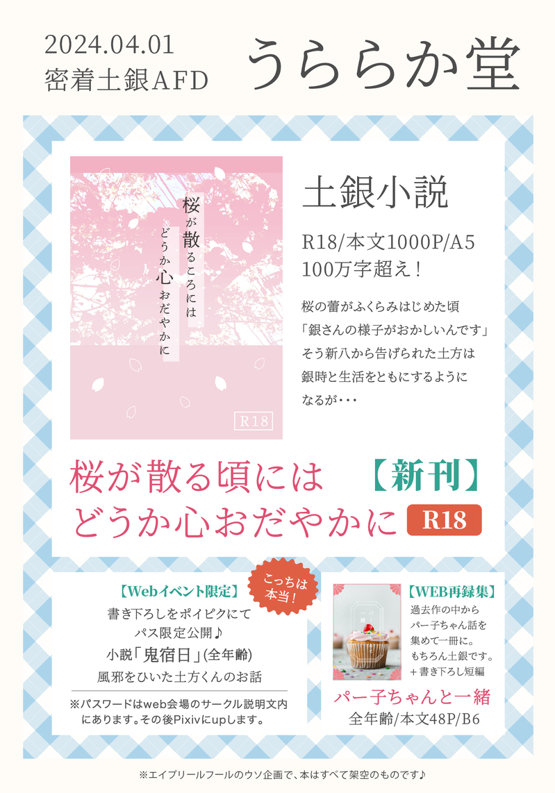 haru0551☆quiet followDONE密着土銀AFDで展示していたお品書きです楽しかった〜☺️*中身はエイプリールフールということで #土銀 hijigin #密着土銀AFD Tap to full screen (size:1400x2000).Repost is prohibited Let's send reactions! freqpopularsnackothersPayment processing Replies from the creator Follow creator you care about!☆quiet follow haru0551MOURNING土銀8の体育祭ネタ無自覚な土これから、沼っていくみたいな?#土銀 2380 haru0551DONE密着土銀AFDで展示していたお品書きです楽しかった〜☺️*中身はエイプリールフールということで related works ヨルノPAST密着土銀AFD(ウソ企画)にて展示していたものです。リーマン土銀未満。 4 haru0551DONE密着土銀AFDで展示していたお品書きです楽しかった〜☺️*中身はエイプリールフールということで @gntmyoiPASTウソのお品書き&サンプル、サクカです。イベント当日は、たくさんコメントいただけてとても嬉しかったです……🥹 3 ヨルノMENU密着土銀AFD(ウソ企画)にて展示していたものです。全てフィクションです。※最後の一枚だけホントです。 7 recommended works niconiconyakiPAST #腐向け #ジョナディオ続きはないです 5 マナセ ノズ@ぎんたま用PAST2007~2008年前後に描いた幻水4です。テド4?テ4にドハマりしてしまい、本命ジャンルサイトとは別にこっそりサイトを作り、オフ活動までしてしまうほど思い入れのある作品&CPでした。テッド最高!!! 5 からあげDONEひふみさんのおなか ぁぉぃっTRAINING7/12いつきのヒジソウへのお題は『いつから当たり前になったの』です。http://shindanmaker.com/392860 そーまこーたDOODLEEP.5見たどー!よかった…王様マジ王様なんじゃ…抱いてくれ(立香を)だがこれからの7章はイキツラすぎんよぉぉぉぉ 有村千代DOODLEショタだいまこ 蓮renDOODLE一日妄想してたTDSデートの図を絵にしてみた♪TDSはお酒が飲めるので酔ったおじさんに美味しく頂かればいいです←おじさんがスマホ持ったら連写機能フル活用してそうw 2 kaka95lonDONE #腐向けキロ白エアプチ開催ありがとうございます!! auk_pDONE小ネタシリーズ 2