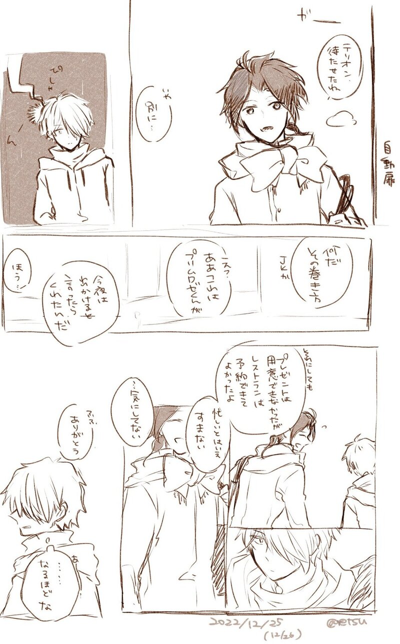 りんごぱい☆quiet followDOODLEメリクリ落書きちゃんと清書します ##テリサイ Tap to full screen (size:1197x1928).Repost is prohibited りんごぱいPROGRESSトーンって、効果音って、すごーい!の力を味わいながら原稿やってます。 りんごぱいMOURNINGこの表情いい感じだな〜と思ったんですけど、漫画に使えなかったので供養。 りんごぱいINFO8/27TM23で頒布予定の新刊(再録本)サンプルです。目次、書き下ろし4編の扉と、一部本文を公開します。 12 りんごぱいMOURNING原稿のボツ。テリオンさんに捨てられたくないなあ〜ってふんわり不安に思うサイラス先生要素あり。 1528 りんごぱいDOODLE没。気に入ってるとこだけ。テーマはちぇんそまんのまきさんが言ってた「えっちなことはお互いを知ってからのほうがえっちなんだよ」的なセリフだった。 1436 りんごぱいDOODLEセルフ課題は「気持ちよさそうなキスをする二人」でした。仲良しな二人はいっぱいキスすればいいと思います。 3 recommended works sakuDOODLE恐る恐る とは 2 りんごぱいDOODLE両想いなのに付き合うまでに時間がかかるテリサイ2 🍎📖セリフ間違えてます。「キミが私の知らない一面を見て」 2 りんごぱいDOODLEソファでいちゃつくテリサイその2!不健全少し入ってきました。次からワンクッション立てます。 りんごぱいDOODLE漫画のネーム進捗5枚(残り15枚)、絵の練習とラフの大量生産ばっか りんごぱいDOODLEテリサイで覚える英会話(ベッドシーン周りのみ)。要は英語ボイスイメージで描いたテリサイです。引用元:できる男・ 女の英会話リアル・フレーズそのうち清書したい 3 りんごぱいDOODLEありそうでなさそうなテリサイ漫画の一コマとか全年齢的な解とか1枚目はたぶん付き合ってる、2枚目は付き合ってないと思う 2 りんごぱいDOODLEキスとかうさぎとか 3 sakuMOURNINGpass→18歳以上ですか?(ファイルの日付的に半年以上前に)書いたけどなんか違うな……と思ってそのまま仕舞ってたやつ。たぶん無意識にマジックスティールダガーしちゃうシチュエーションが書きたかった筈 2855 りんごぱいDONE2023/2/18のオンイベで展示していたテリサイ全年齢です。 2