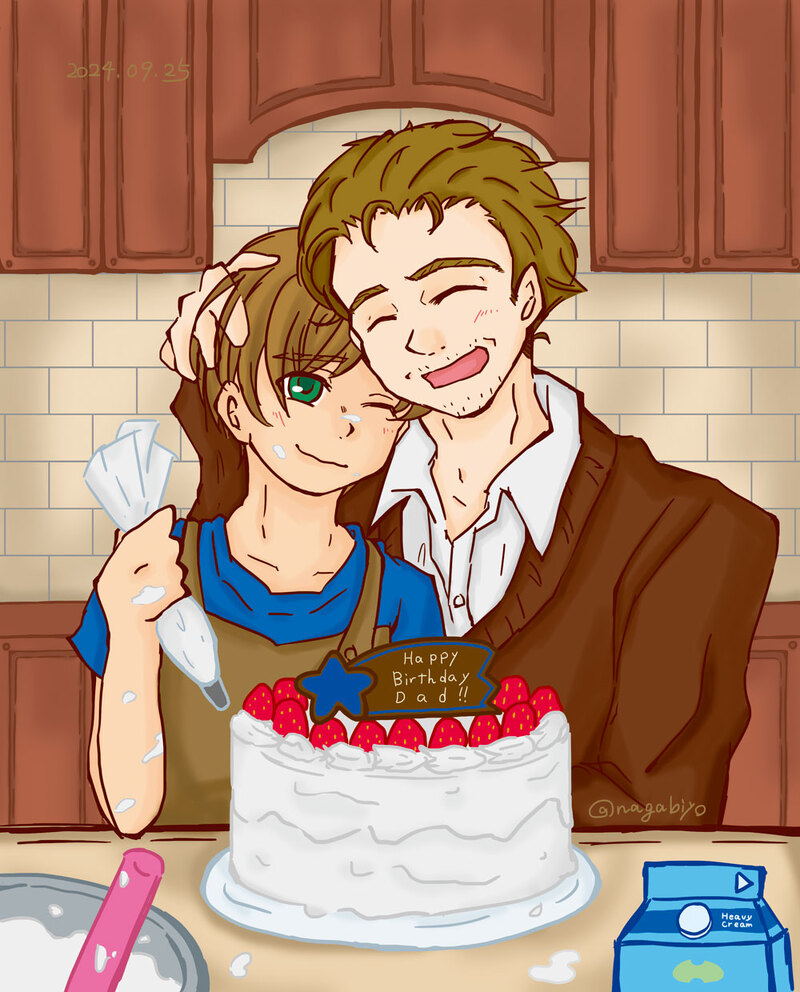 「俺にサプライズでケーキ作るのを実は知っていたんだが、嬉しくて早く帰って来ちまったよ。ありがとう、ルーク!」