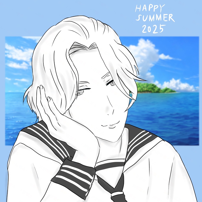今年の暑中見舞いイラストは短髪ヴィル様で