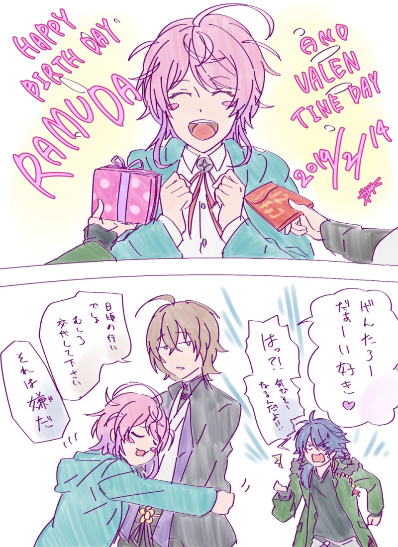 乱数誕生日絵。時期的に女性陣から貰うプレゼントの中身チョコだらけになってそう。そしてきっと帝統の箱の中身はスーパーの駄菓子コーナーに置いてある1個数十円のお菓子鷲掴み。ぽっせで分け合って一緒に食べると良いよ。