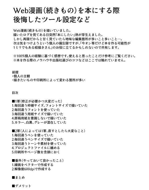 0_sech1☆quiet followMEMOWeb漫画(続きもの)を本にする際後悔したツール設定など備忘録です。次は注意しようと個人的に思ったツールの設定や知らずに苦労した原稿のお作法?を纏めました。中にイラストや漫画はありません。 show all(+2 images) Tap to full screen (size:595x758).Repost is prohibited Let's send reactions! freqpopularsnackothersPayment processing Replies from the creator Follow creator you care about!☆quiet follow 0_sech1SPOILER映画の感想です好き勝手にしゃべっていますが資料を見ていないので曖昧で勘違いもあるかもしれません※ネタバレあります※萌え語りはあまりありません※もっと色々語りたいと思ったのですがいざ書くと思い出せず… 2 0_sech1MEMOWeb漫画(続きもの)を本にする際後悔したツール設定など備忘録です。次は注意しようと個人的に思ったツールの設定や知らずに苦労した原稿のお作法?を纏めました。中にイラストや漫画はありません。 3 0_sech1DOODLEいちゃいちゃ練習らくがき🌊🦋特に何も見えませんが背後注意1枚目はしのぎゆ風味?(なのか…?)ファンタジーを解する大人の方はお付き合いください… 2 0_sech1DOODLE✈ぎゆしのの設定+続きらくがき(おとな向け)雰囲気だけ?ですが背後注意ファンタジーを解する大人の方はお付き合いください… 3 0_sech1DONE✈ぎゆしの企業様に迷惑がかかるといけないので検索避けできるこちらにこっそり投げます…(チキン) 2 0_sech1DONEぎゆしのキメ学軸、卒業後に付き合ってるあなたの帰りを待っているうちに…∞列車組のどでかぬいが可愛かったのでついうっかり描いてしまった推しぬい妄想らくがき…なんですが、企業様に迷惑がかかるかもしれないので検索避けできるこちらにこっそり投げます… 2 recommended works コトブキDOODLE⚠if√です。ネタバレは、してないと思います。鬼ぜーんぶ倒したあとのぎゆしのです。付き合ってます。 4 sirugeruDOODLE kmtmono225134DOODLE縁側でのひととき。 yuki1s0PAST【再掲】ぎゆしの 夏祭りはじめて描いたマンガの様な物。 2 kakikototoriruDOODLE生存ifいい夫婦の日🌊🦋。「お味噌汁のお味はどうですか?」 北原歩TRAINING私の描くR18こんな感じですマンガ 飛牙マサラPROGRESS『BND3』の推敲という名の加筆修正が何週目か忘れたけど終わりました😂 後は読み上げをしなくては! 詠太君の出番です😁 画像は書き下ろしの部分になります👍念のためワンクッションしておきますね。 ChiwiDOODLETest color Pass : yes/no 2 水実水果(みなみみか)DOODLE雑です。決戦後。後藤さん。欠損表現有り。暗い。ぎゆしの。 5