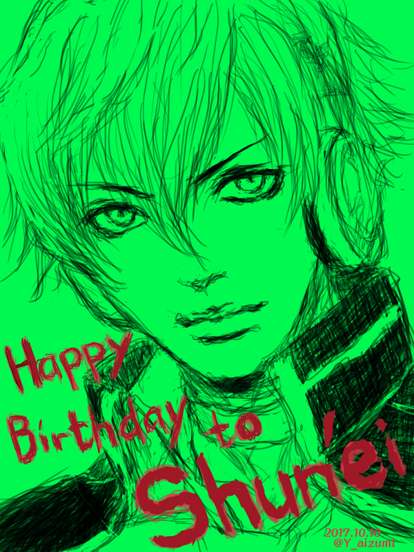 シュンエイくん、ハピバ絵。