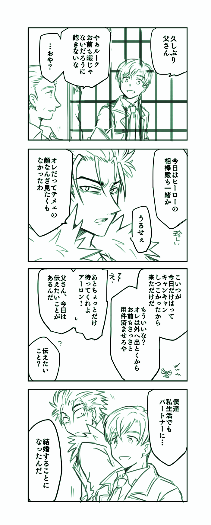 蛇足補足:最後のコマ「億が一そんなことになっても自分はそんなことしないだろうな」と思ってる上でのおふざけです。ルークもそれを理解した上でツボってます。A18後の親子は湿度が高くても乾燥剤が入っててもいい…。